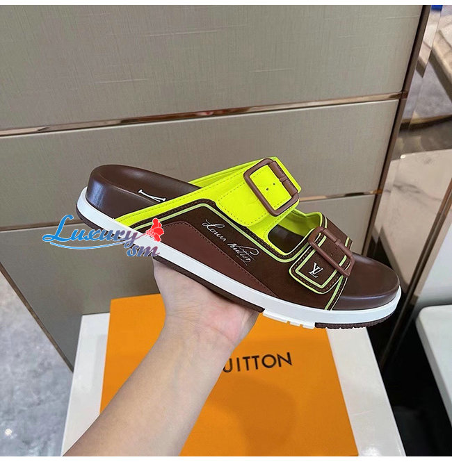 LOUIS VUITTON-1A8ZS9 루이비통 옐로우 스웨이드 LV 트레이너 뮬