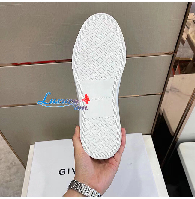 GIVENCHY-BH0050H 지방시 화이트 그레인 송아지 가죽 시티 스니커즈 남성용