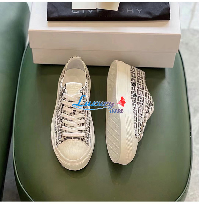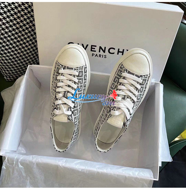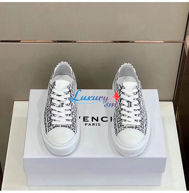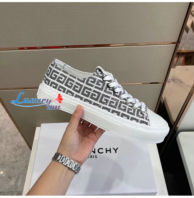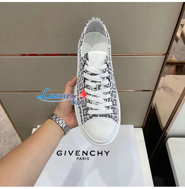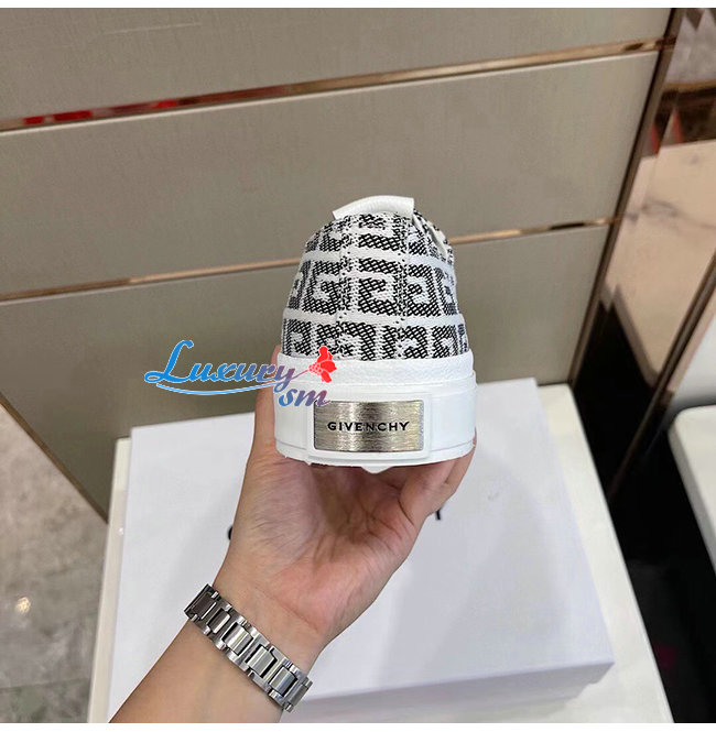 GIVENCHY-BH0050H 지방시 블랙/화이트 4G 모티프 자카드 시티 스니커즈 남성용