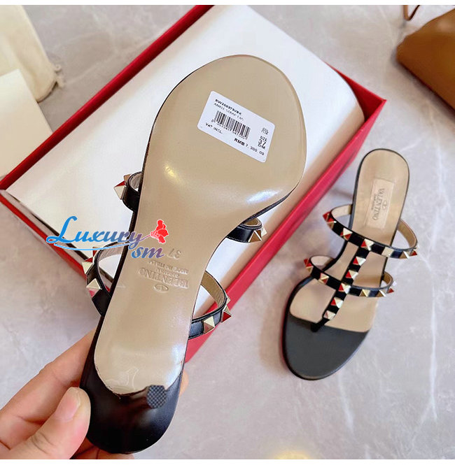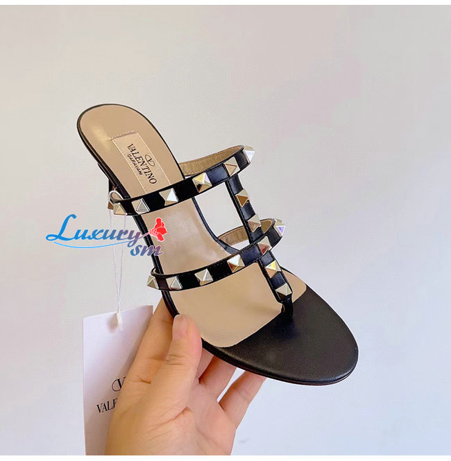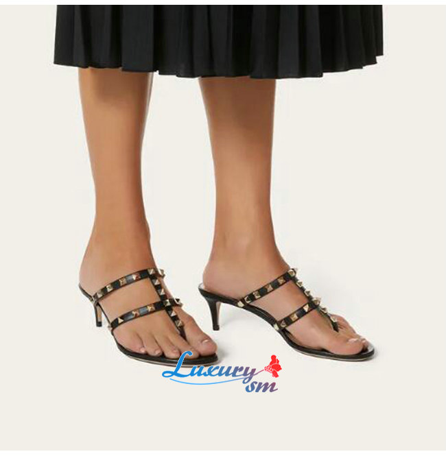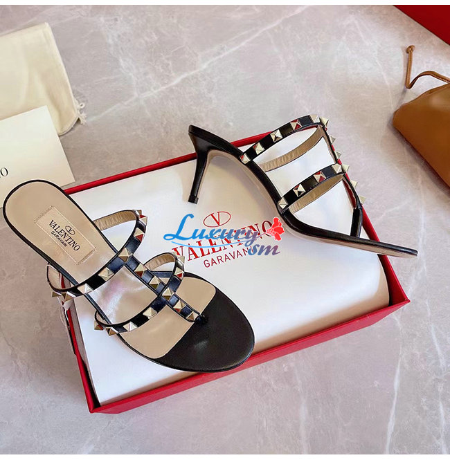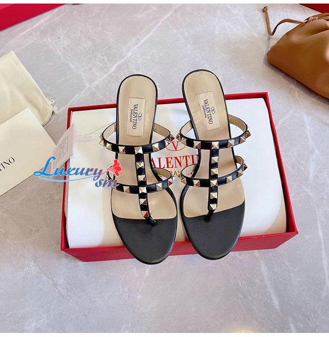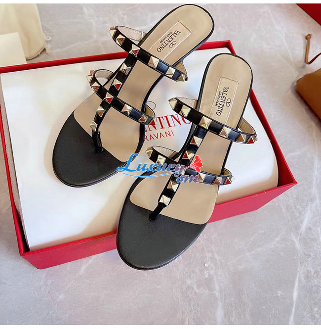 VALENTINO-VW2S0AV 발렌티노 블랙 송아지 가죽 락스터드 통 샌들