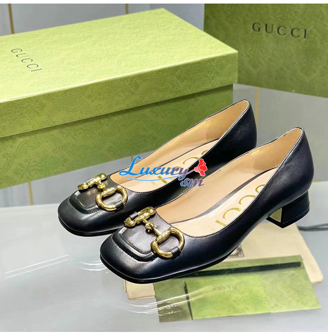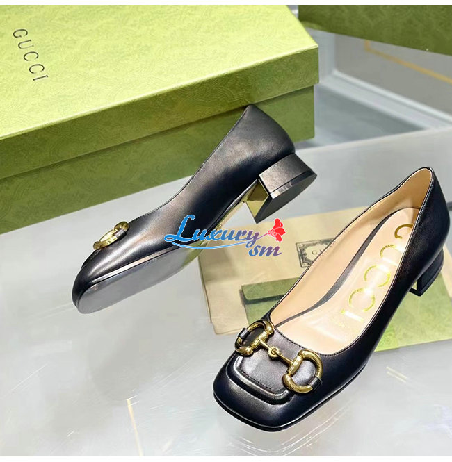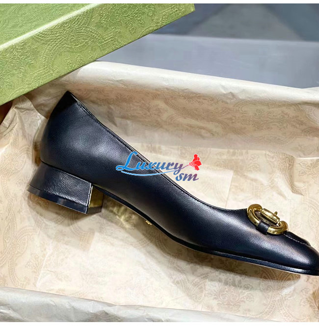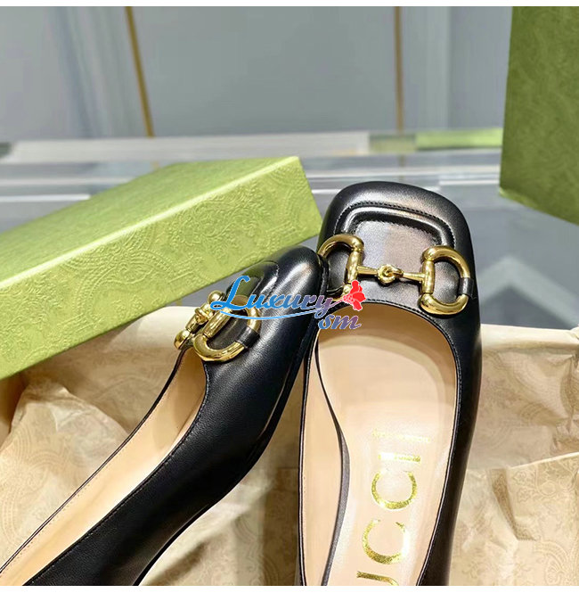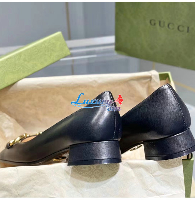 GUCCI-645600 1000 구찌 블랙 가죽 홀스빗 발레 플랫