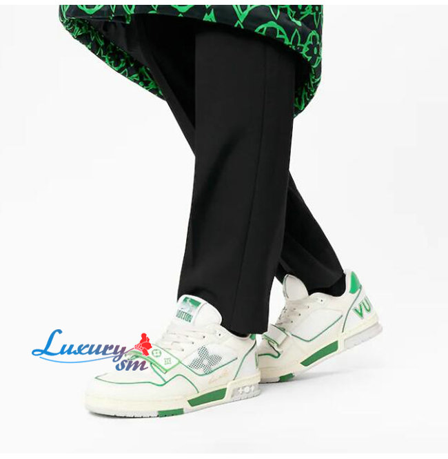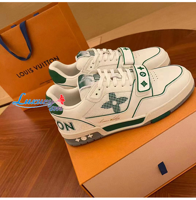 [스페셜오더]LOUIS VUITTON-1A98UZ 루이비통 화이트/그린 송아지 가죽 LV 트레이너 스니커즈 남여공용