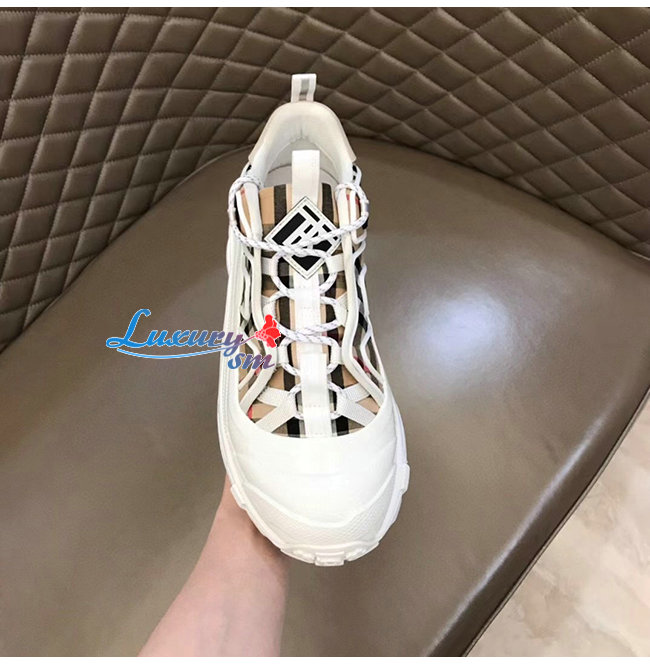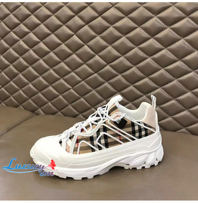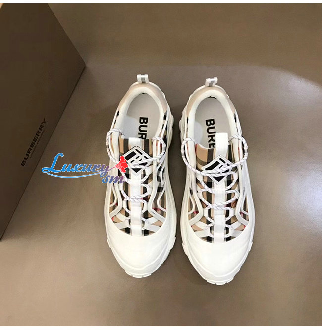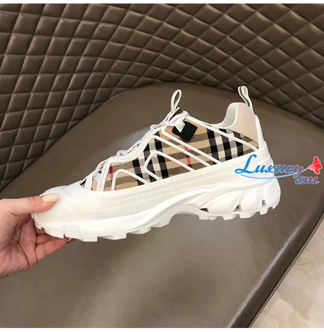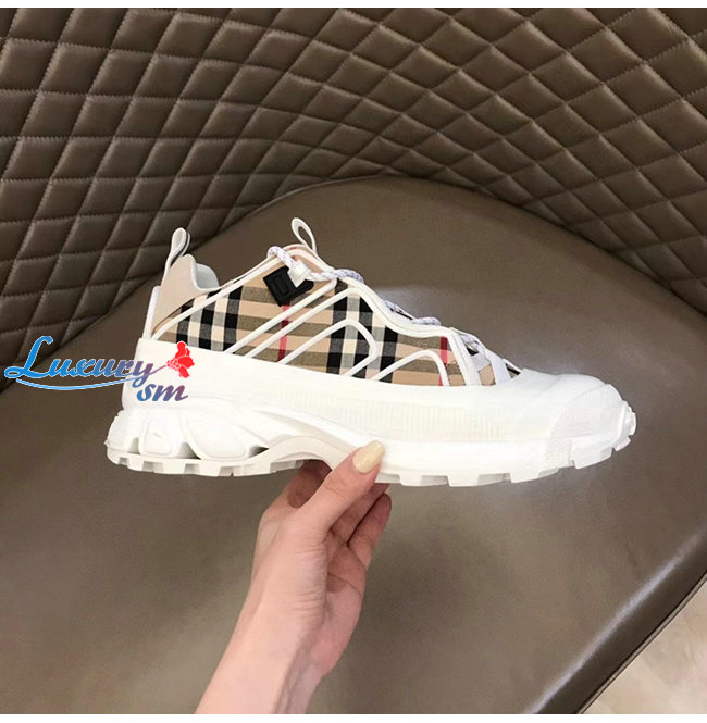 BURBERRY-80372541 버버리 베이지/화이트 빈티지 체크 코튼 레더 아서 스니커즈
