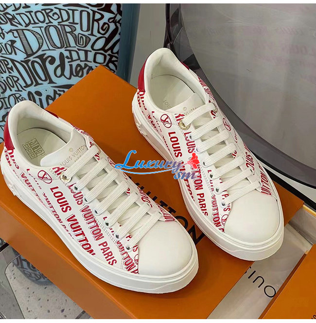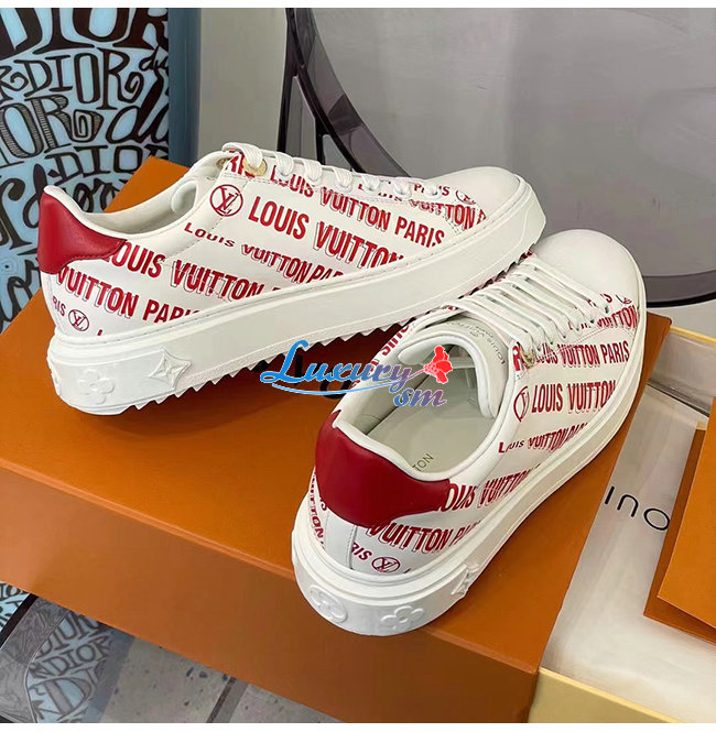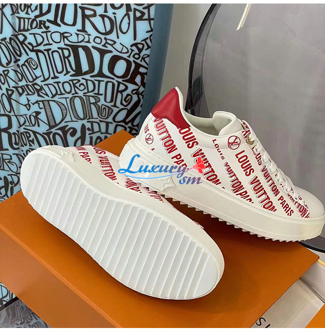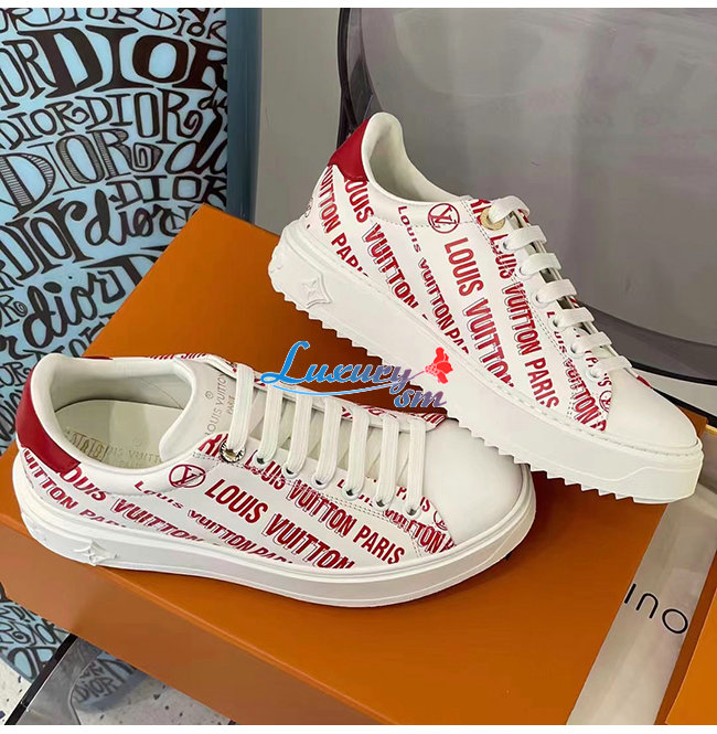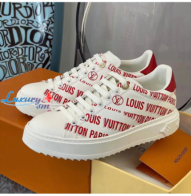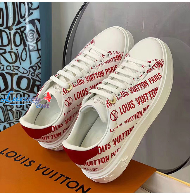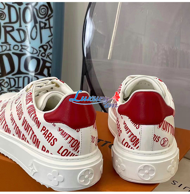 LOUIS VUITTON-1A9D2Q 루이비통 화이트/레드 프린팅 송아지 가죽 타임 아웃 스니커즈