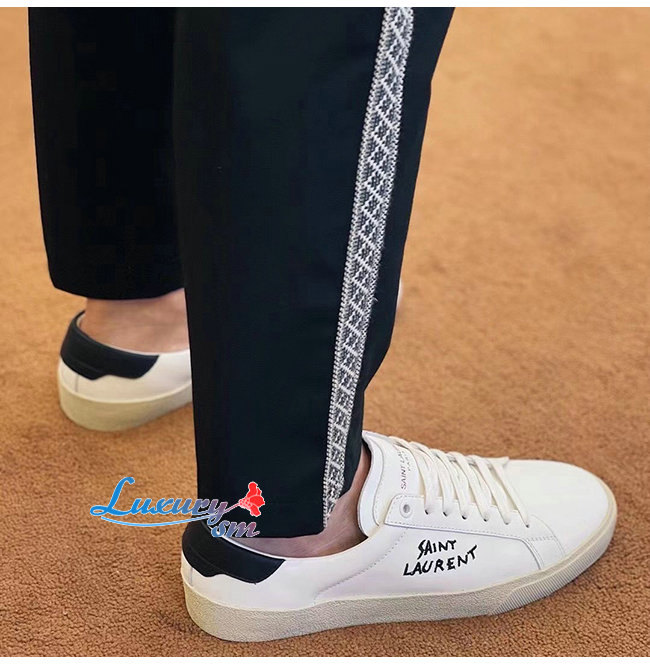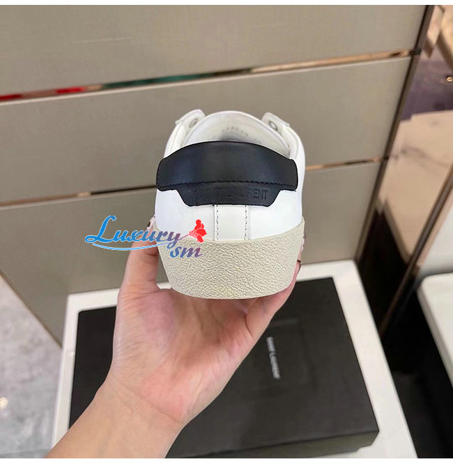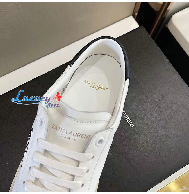 SAINT LAURENT-611106 생 로랑 화이트 코트 클래식 SL/06 자수 장식 스니커즈 남성용