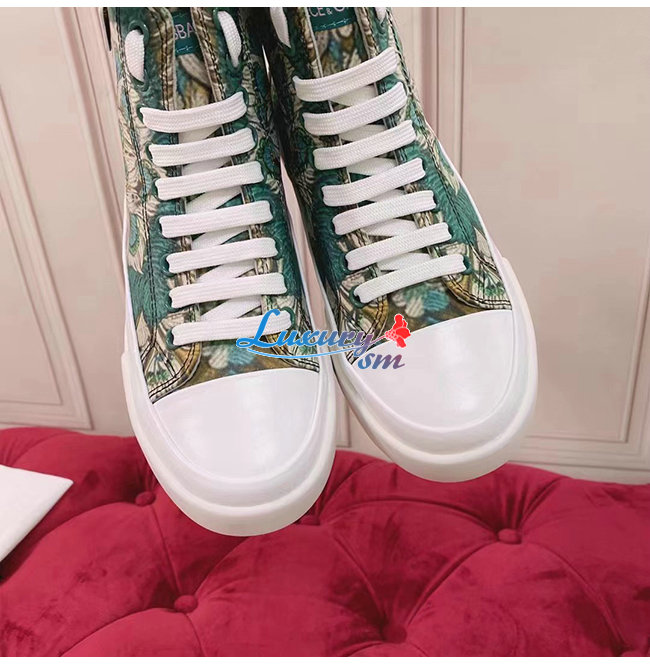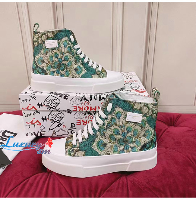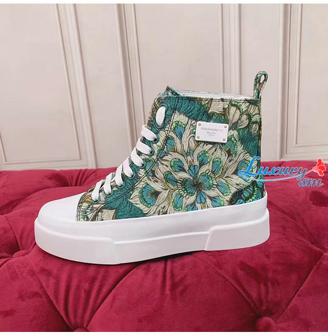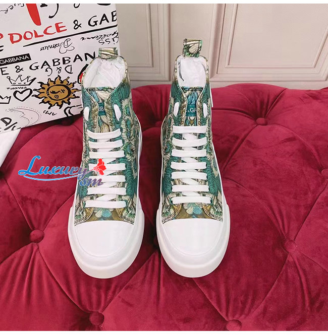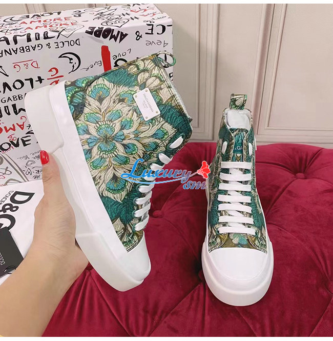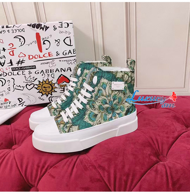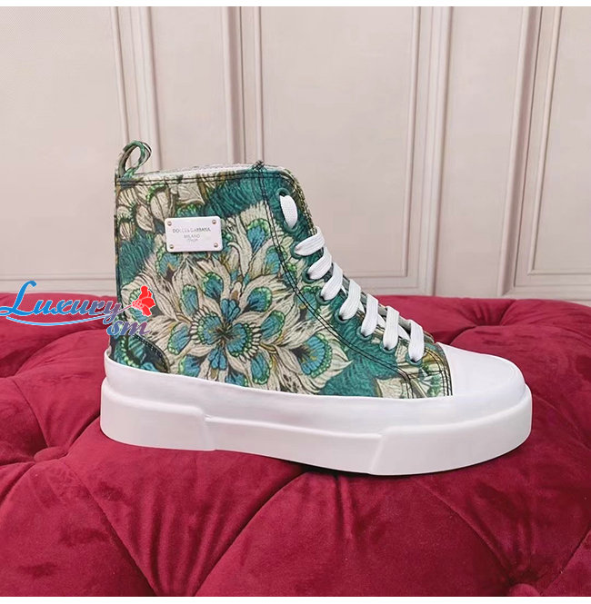 Dolce and Gabbana-돌체 앤 가바나 멀티컬러 로고 플레이트 브로케이드 포르토피노 하이탑 스니커즈 여성용
