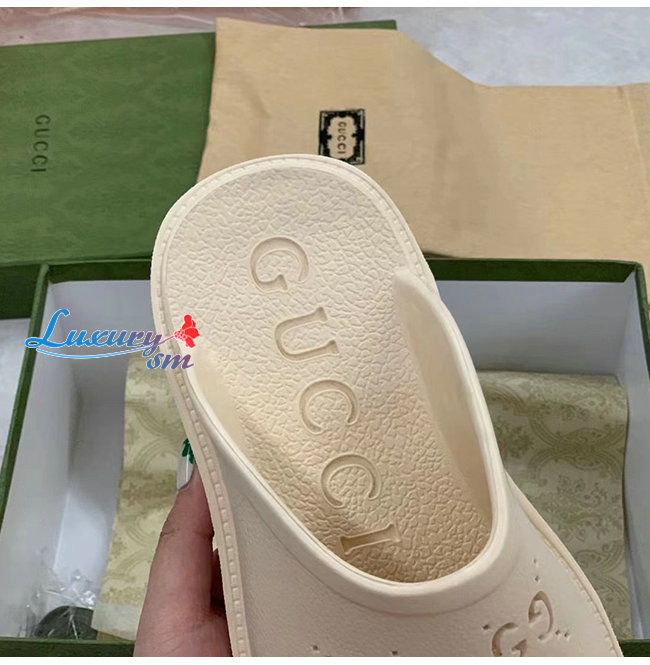 GUCCI-655517 9022 구찌 화이트 천공 GG 러버 슬립온 샌들 남여공용