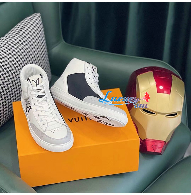 LOUIS VUITTON-1A98QB 루이비통 화이트 캔버스 모노그램 디테일 CHARLIE 스니커 부츠 남여공용