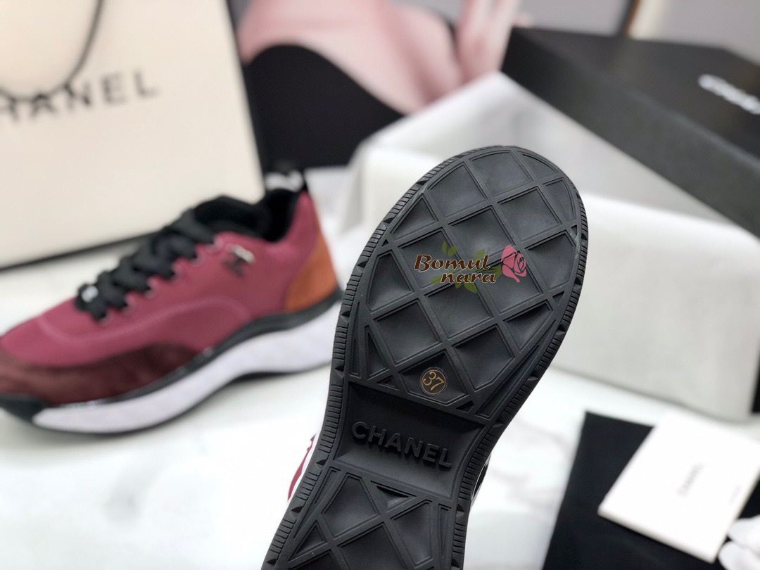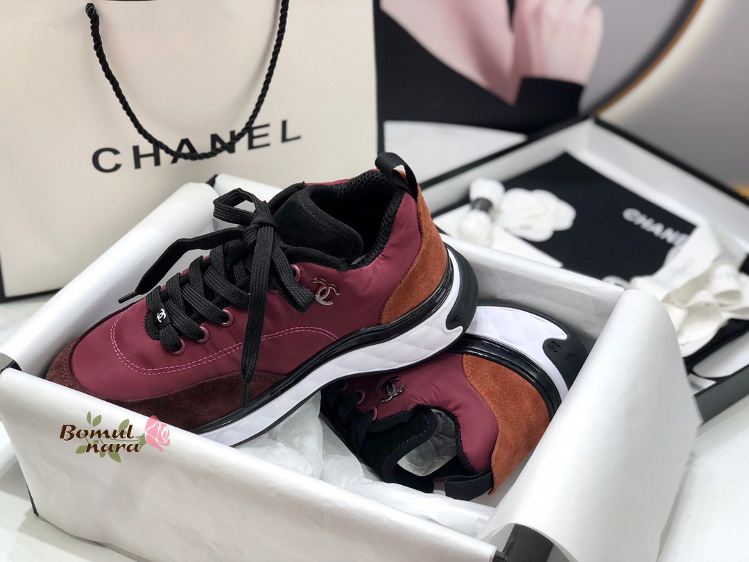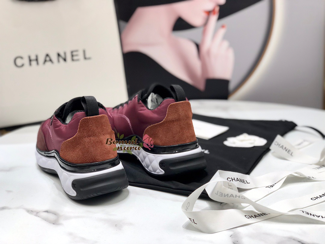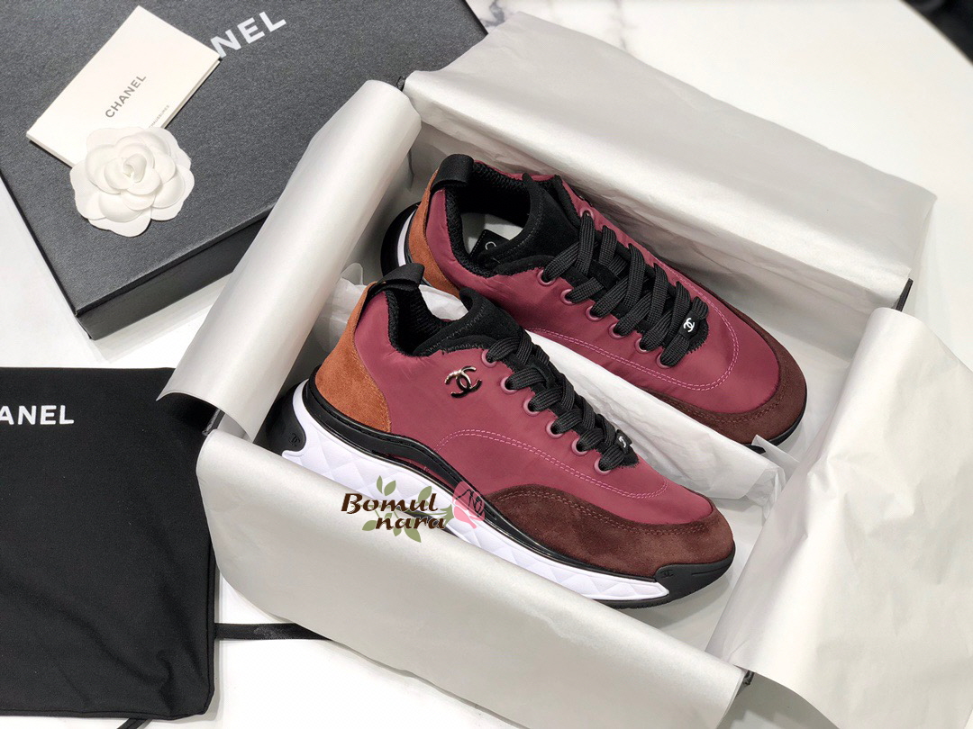CHANEL-G38035 샤넬 버건디 나일론&스웨이드 믹스드파이버 스니커즈 / 여성