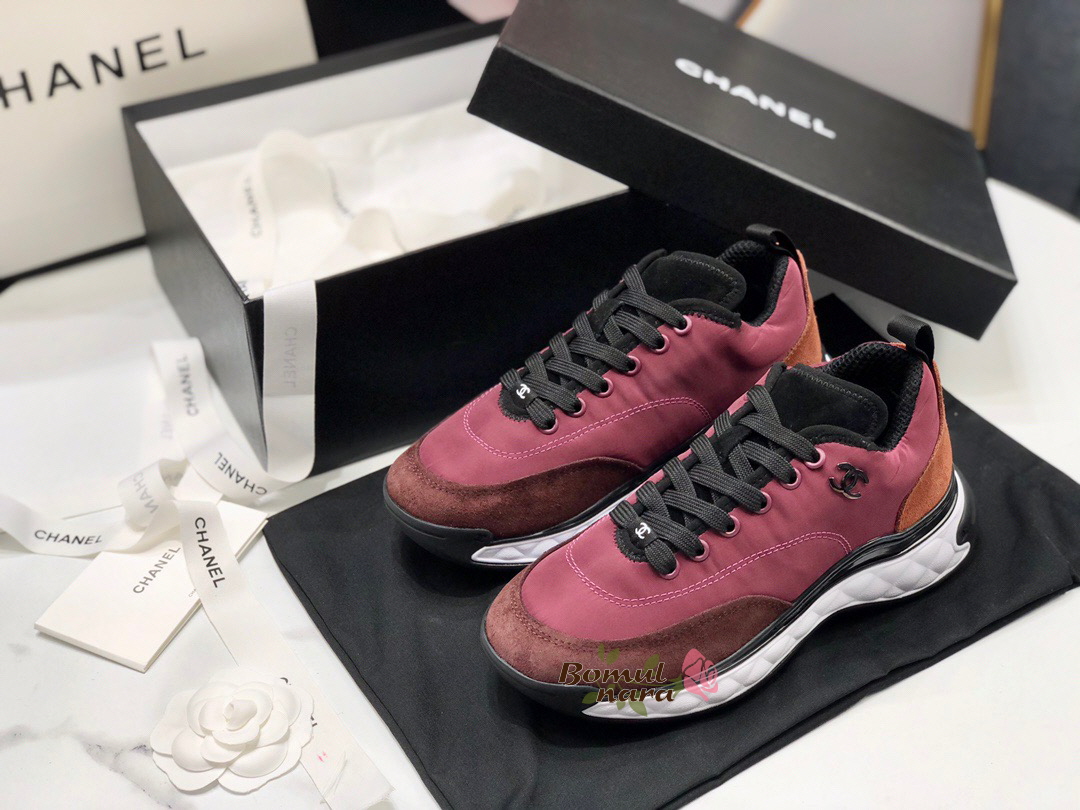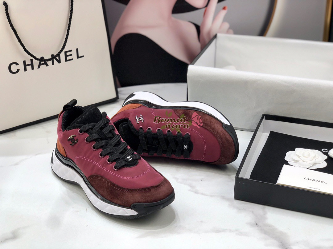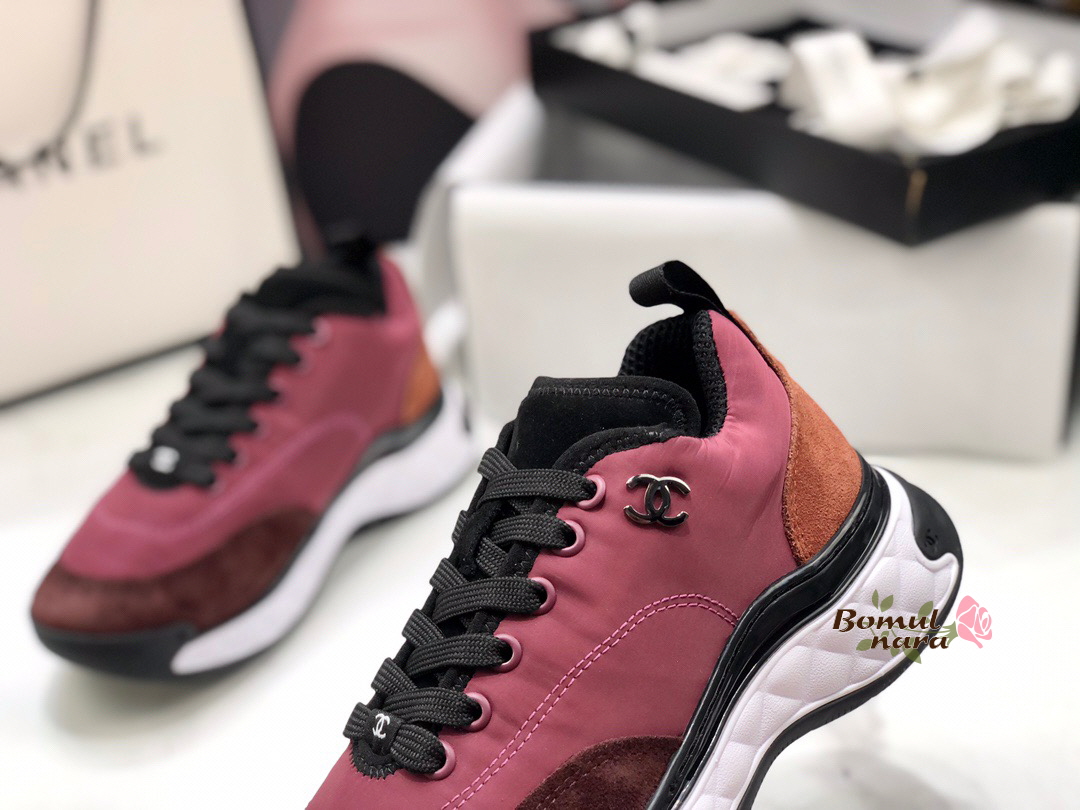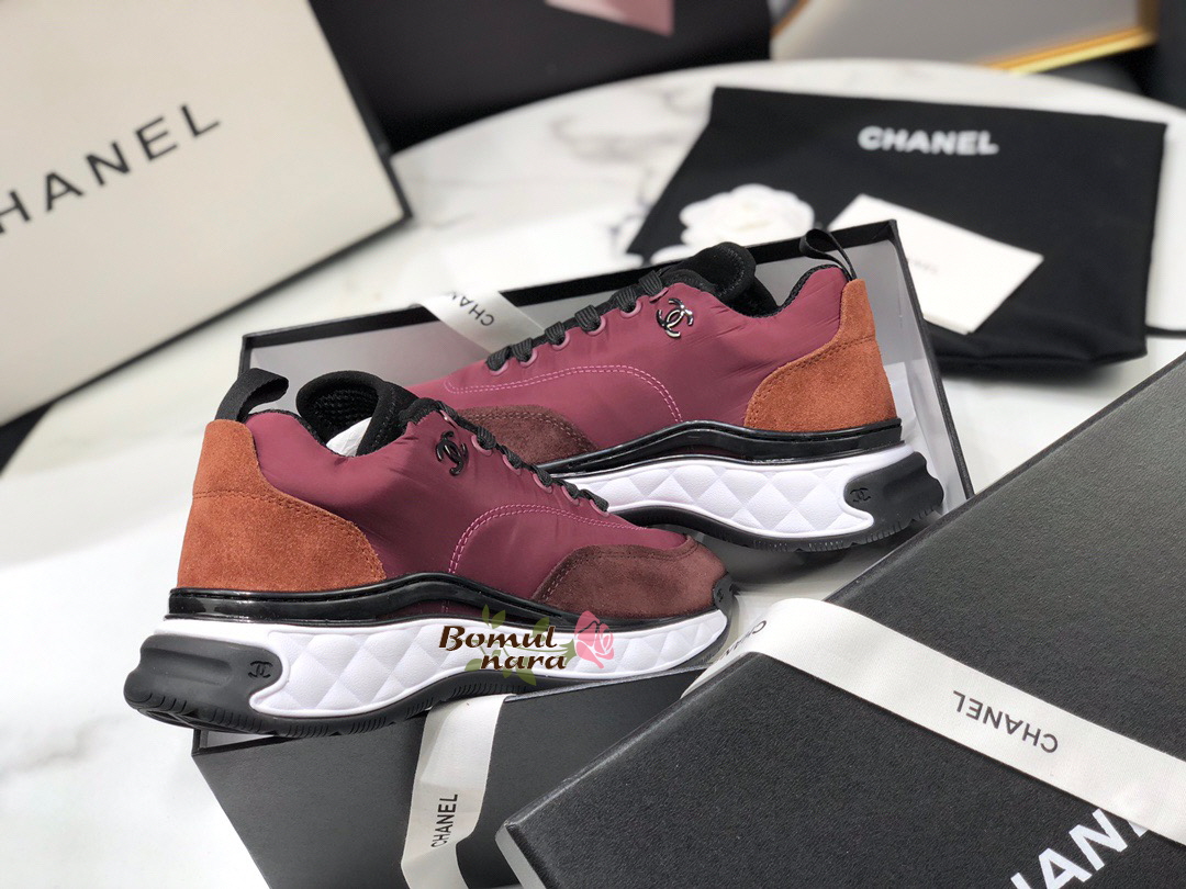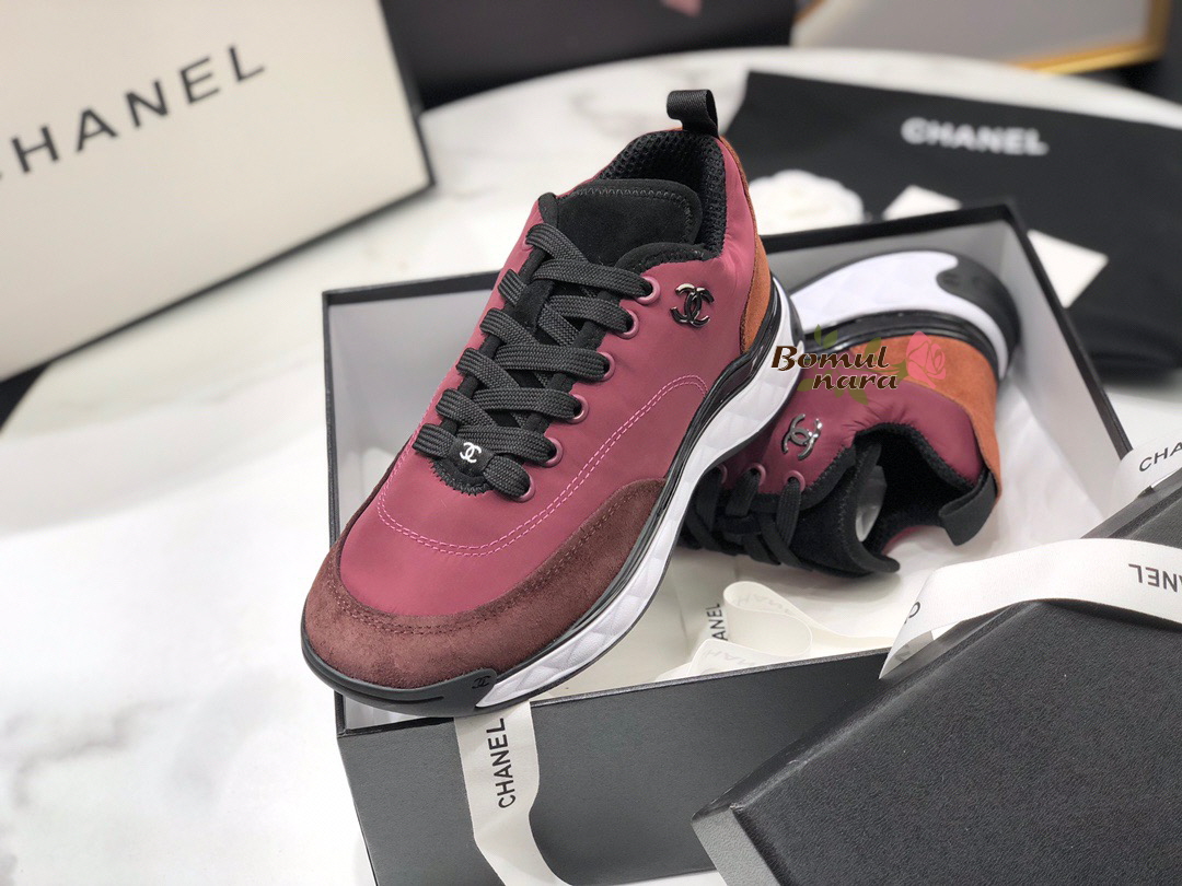 CHANEL-G38035 샤넬 버건디 나일론&스웨이드 믹스드파이버 스니커즈 / 여성