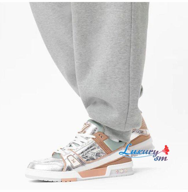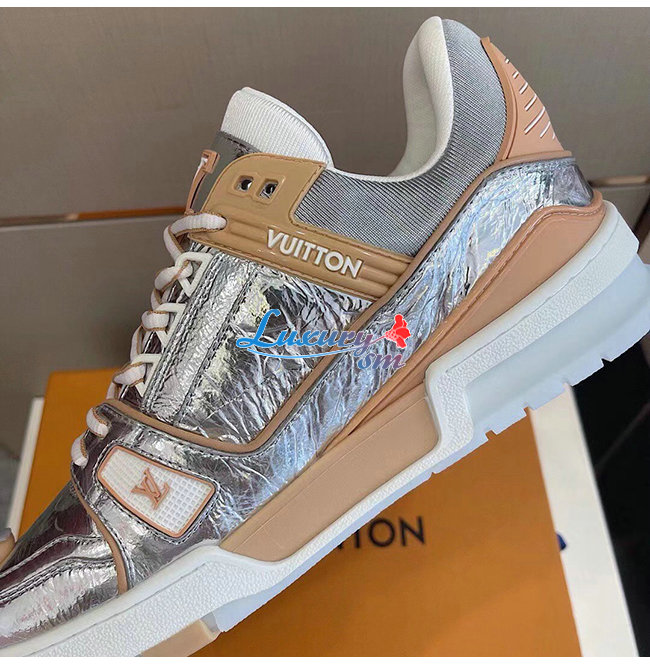 LOUIS VUITTON-1A996H 루이비통 실버 메탈릭 가죽 LV 트레이너 스니커즈