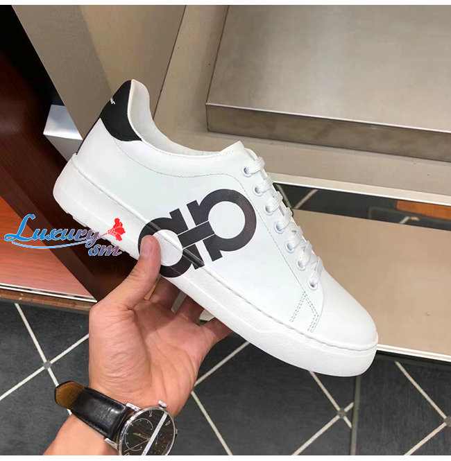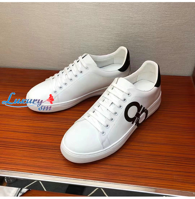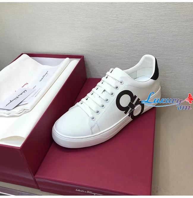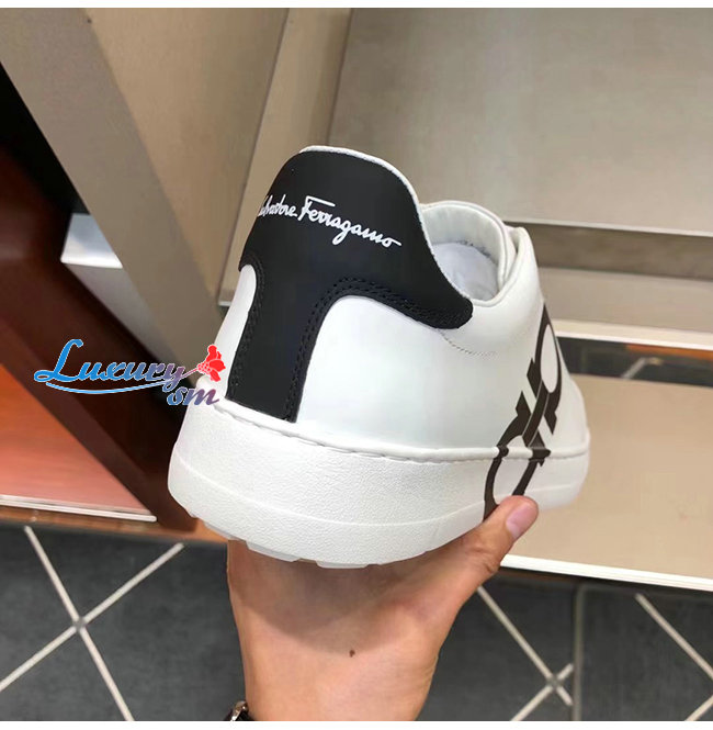 Ferragamo-020489 페라가모 화이트 카프스킨 넘버 스니커즈