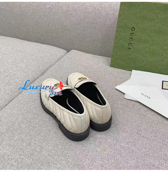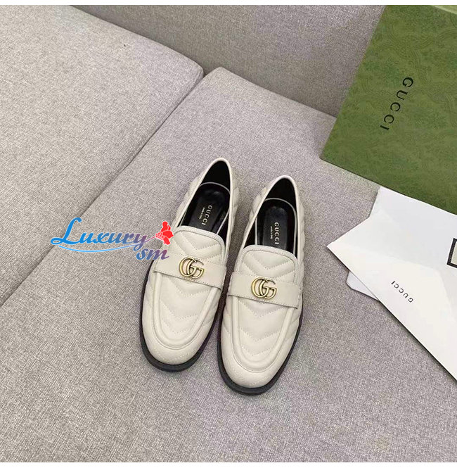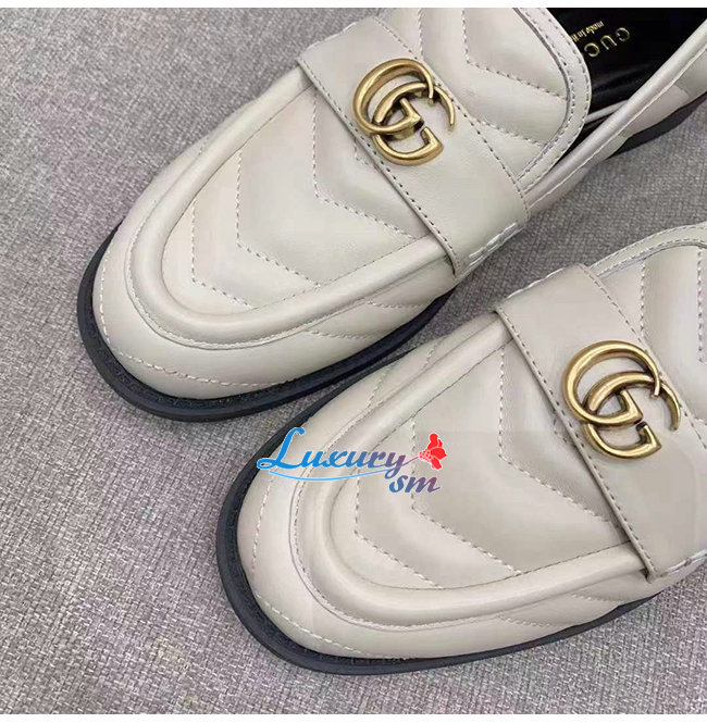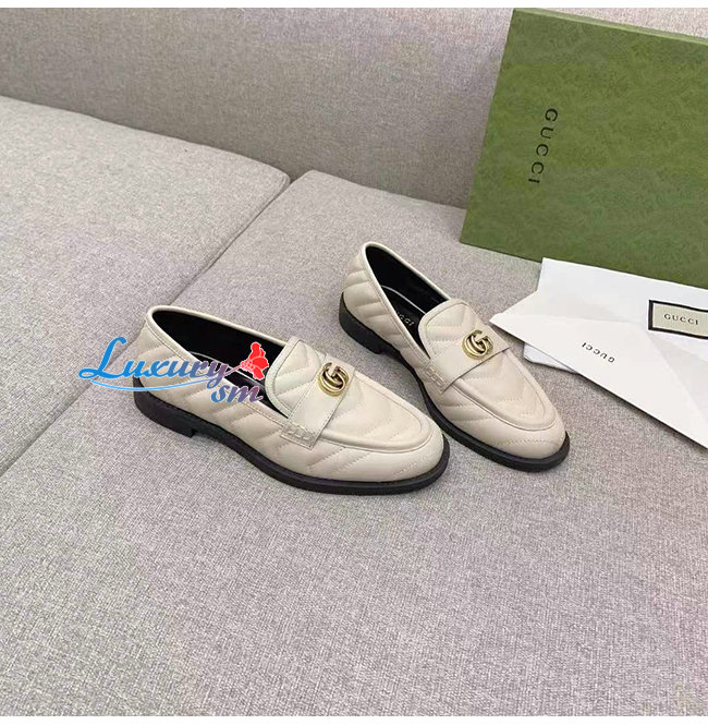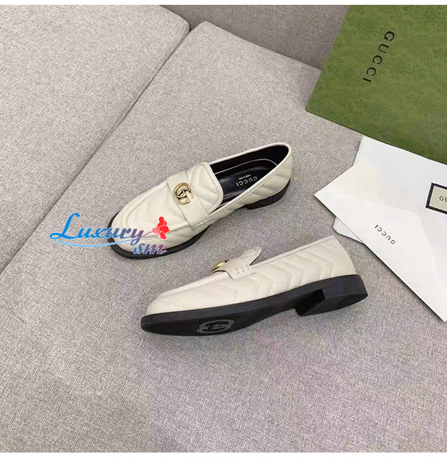 GUCCI-670399 9022 구찌 화이트 마틀라세 가죽 더블 G 로퍼