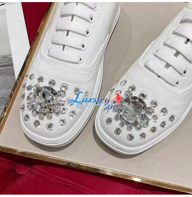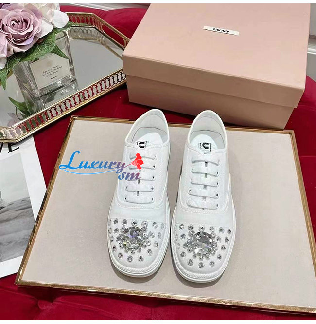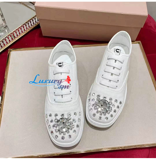 MIUMIU-5E450D 미우미우 화이트 코튼 개버딘 스니커즈