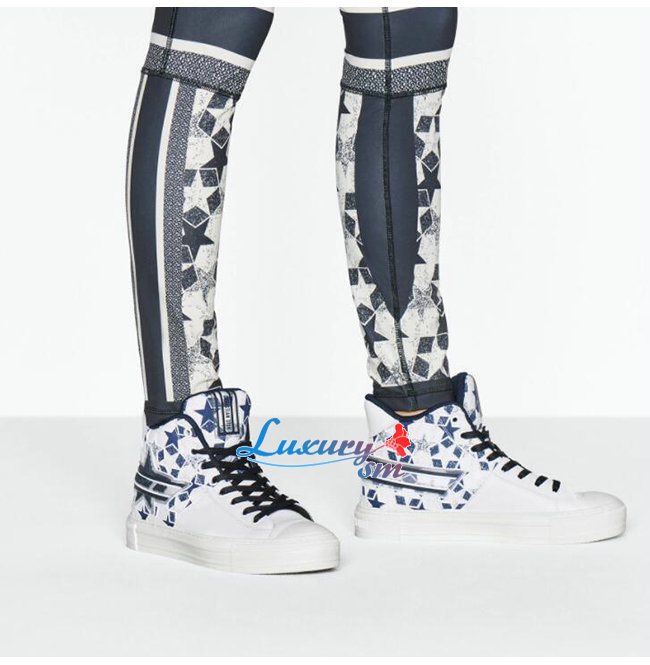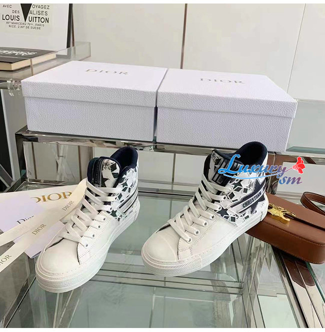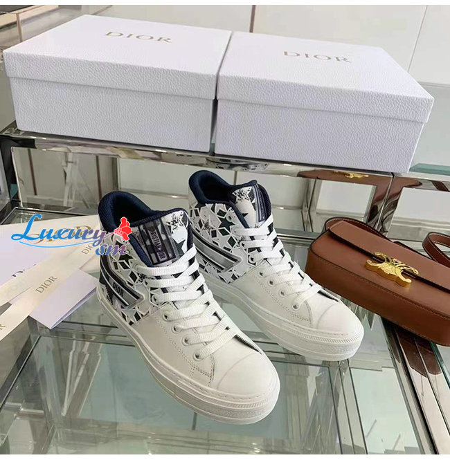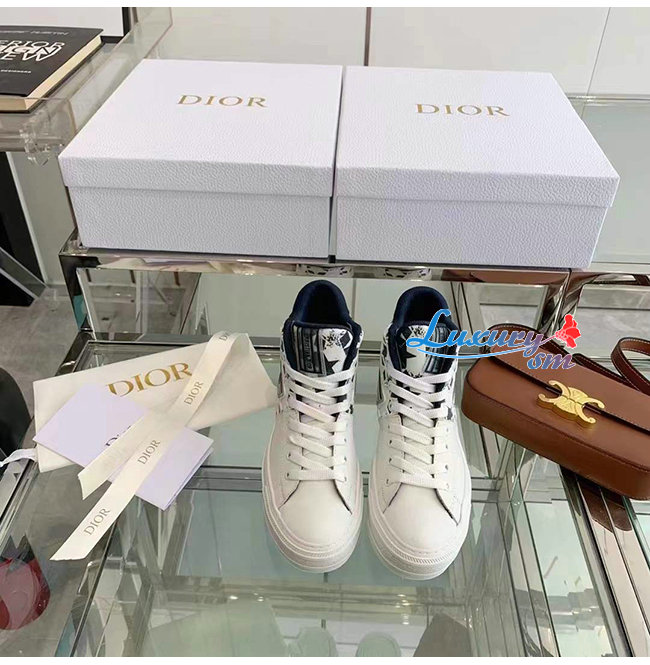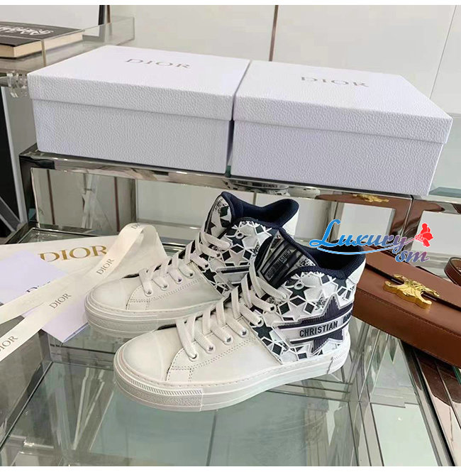 DIOR-KCK336 디올 화이트/블루 엠보싱 송아지 가죽 WALK N DIOR STAR 스니커즈 여성용