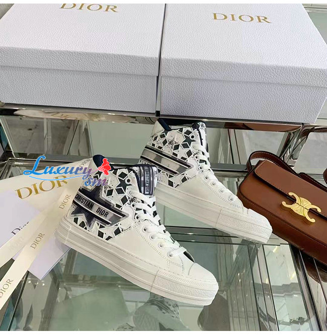 DIOR-KCK336 디올 화이트 엠보싱 송아지 가죽 WALK N DIOR STAR 스니커즈 여성용