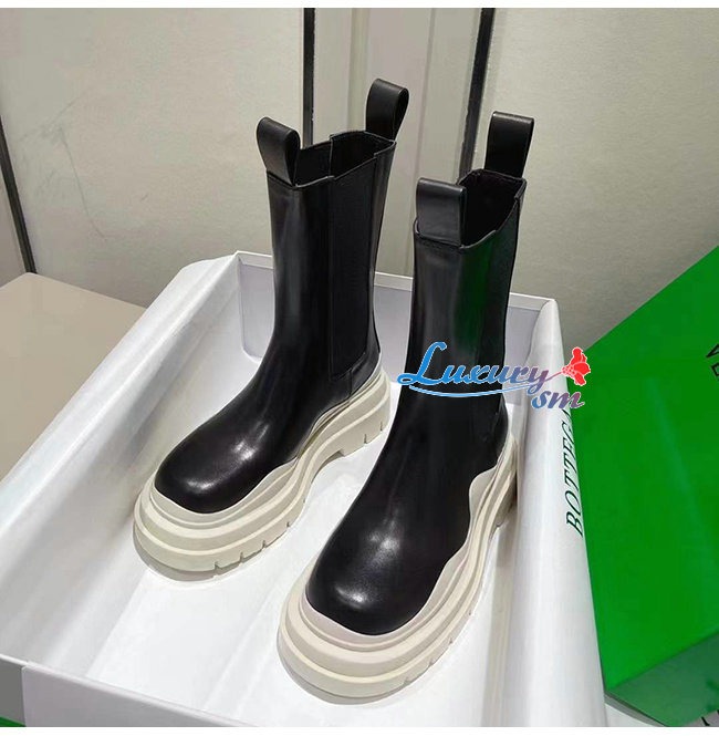 BOTTEGA VENETA-630297 보테가 베네타 버터/블랙 송아지 가죽 BV 타이어 부츠 여성용