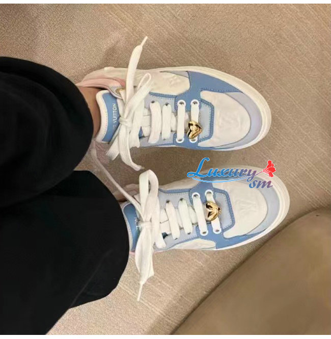 신발끈 부분의 LV 이니셜이 새겨진 하트 모양 골