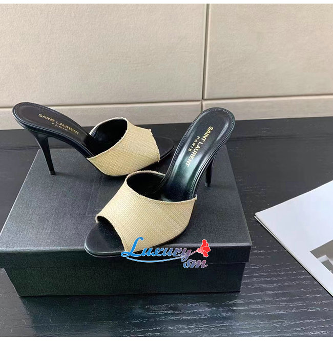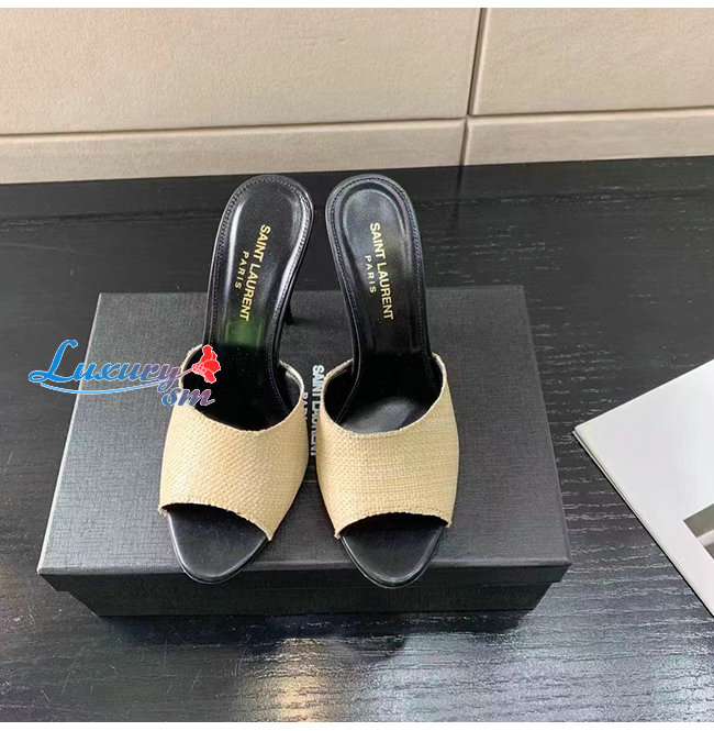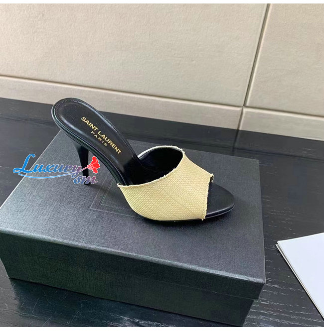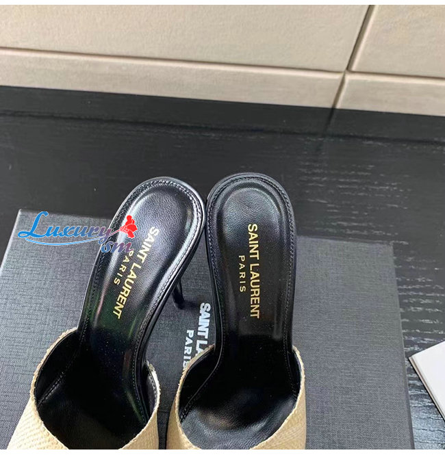 SAINT LAURE**-687675 생 로랑 아이보리 라피아 LA 16 뮬