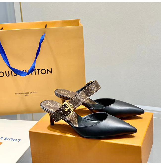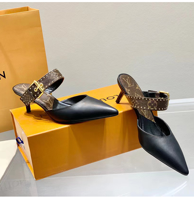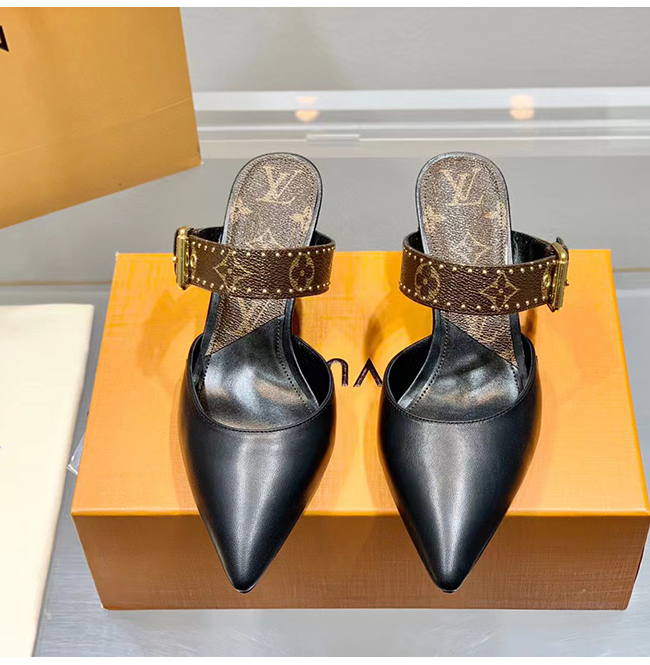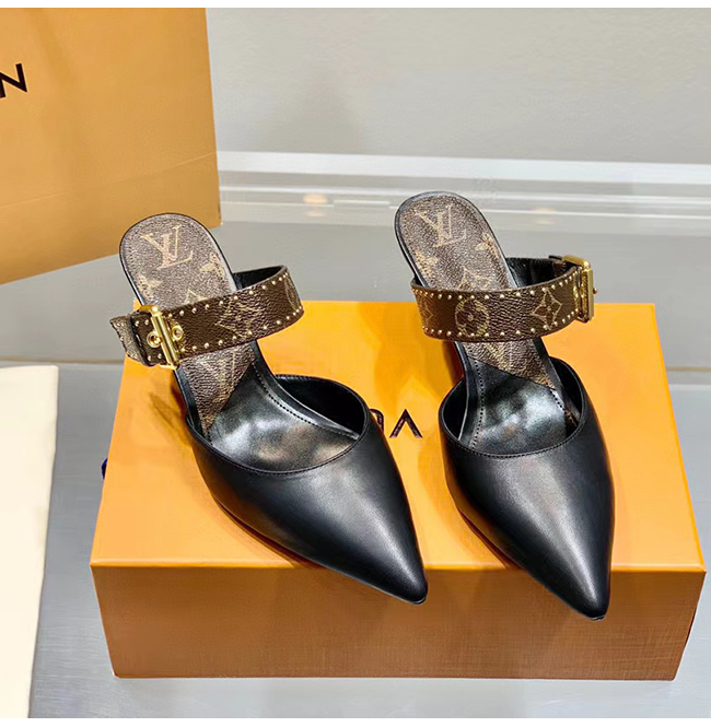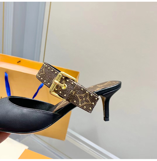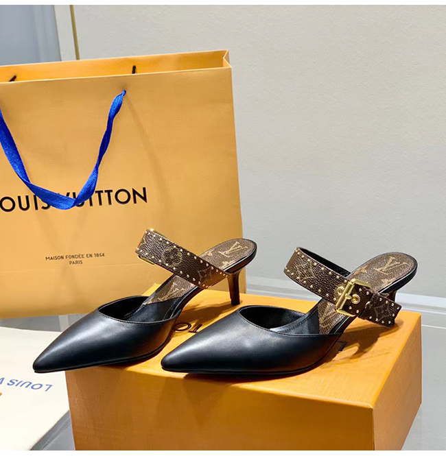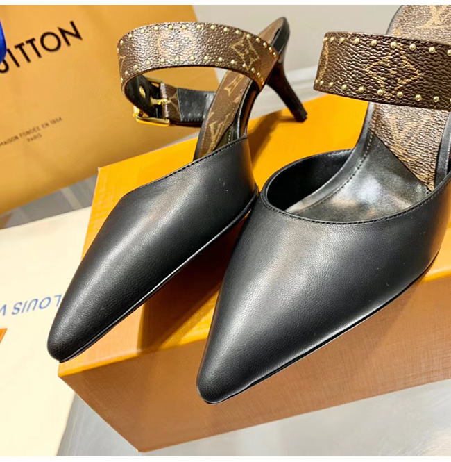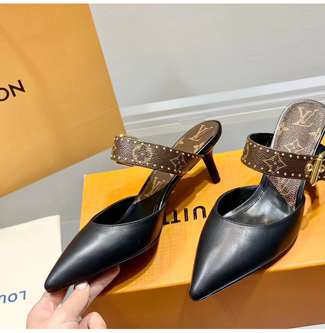 LOUIS VUITTON-루이비통 블랙 모노그램 스터드 장식 펌프스