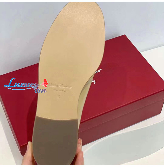 Ferraga**-01C952 페라가모 화이트 라미네이트 레더 비바 로퍼