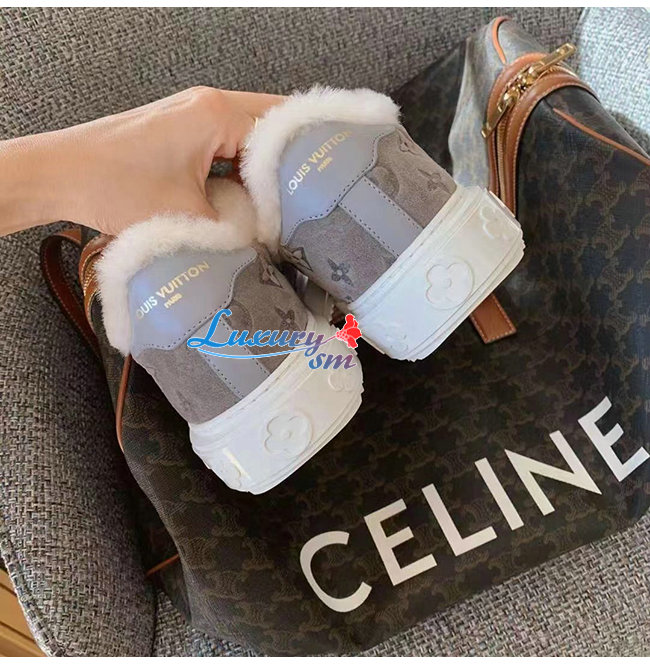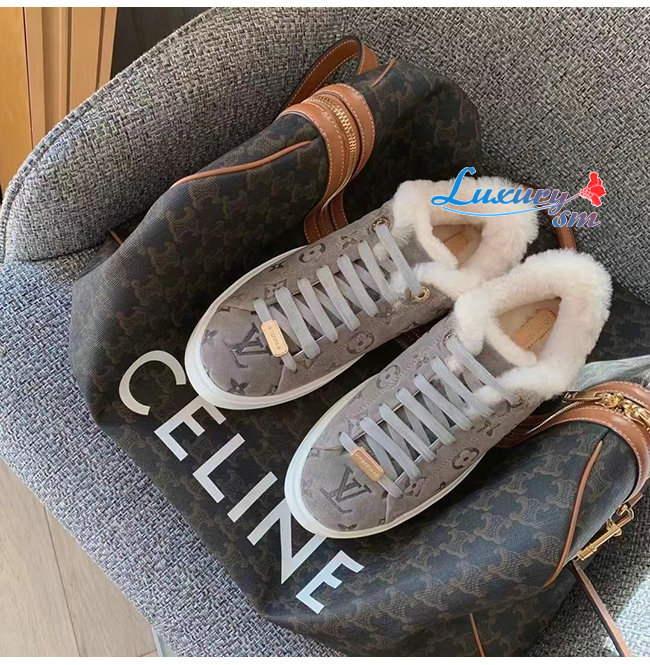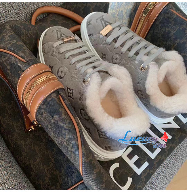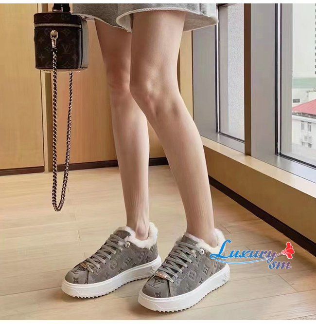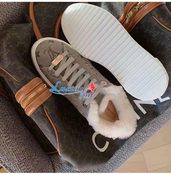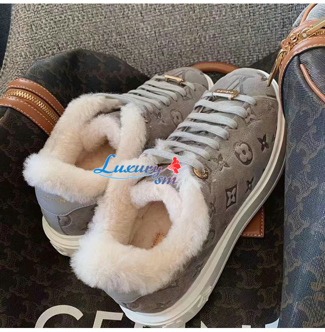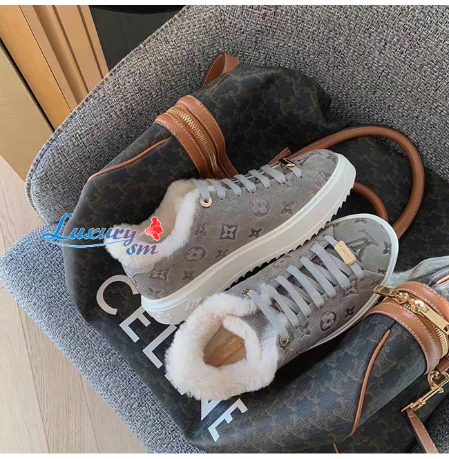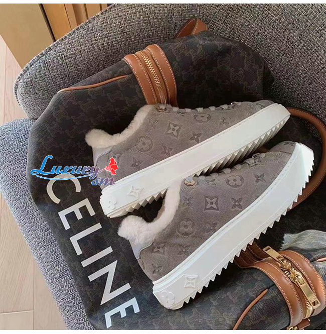 LOUIS VUITTON-1AADYD 루이비통 그레이 스웨이드 모노그램 타임 아웃 여성용 스니커즈