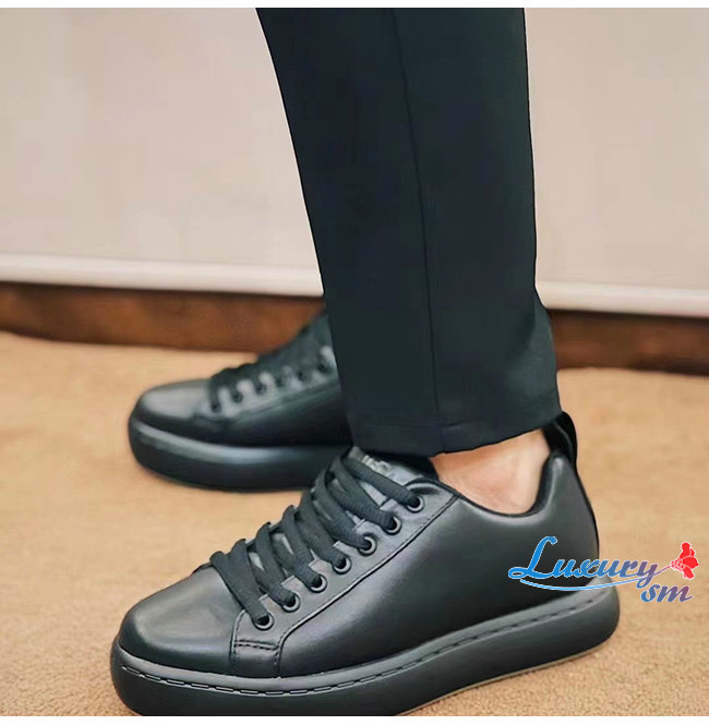 패딩 처리한 가죽 소재 레이스업 스니커즈