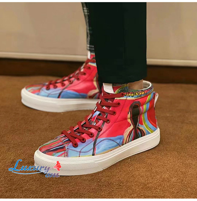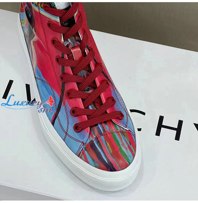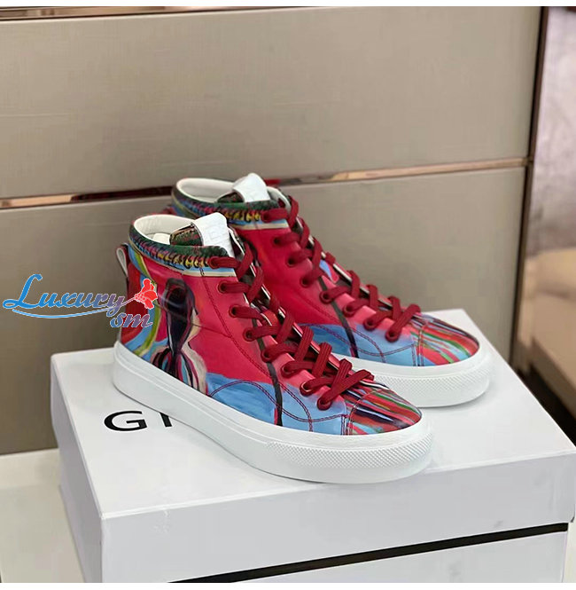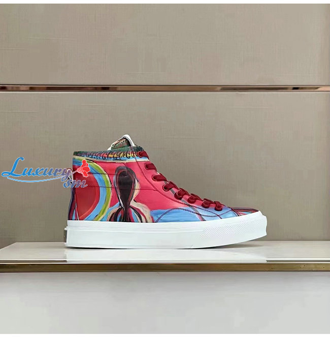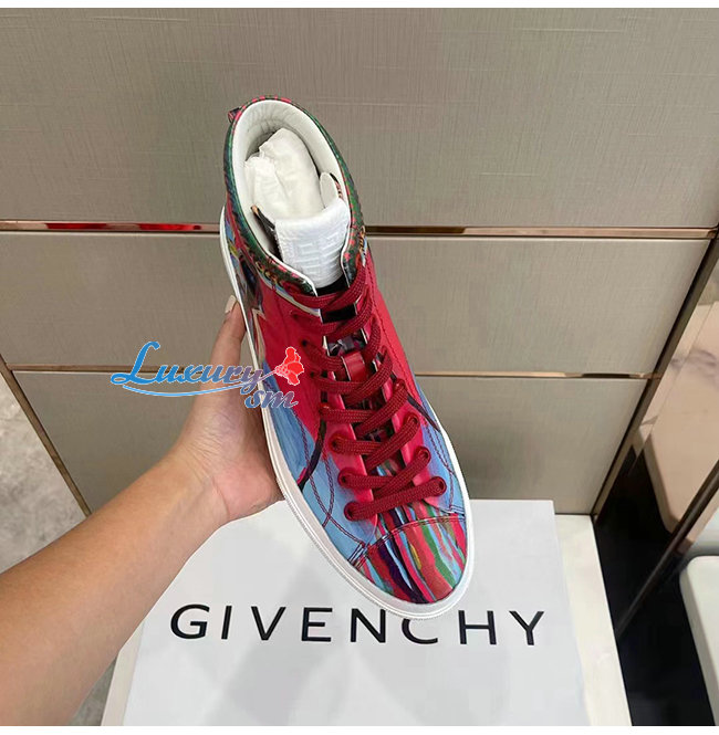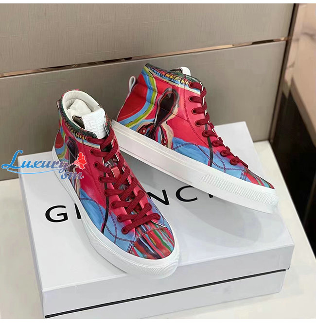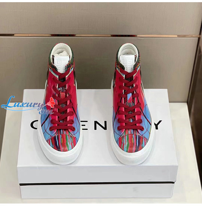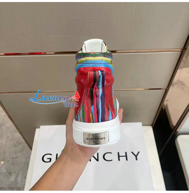 GIVENCHY-BH005LH1 지방시 레드 리퍼 프린트 가죽 시티 하이탑 스니커즈 남성용