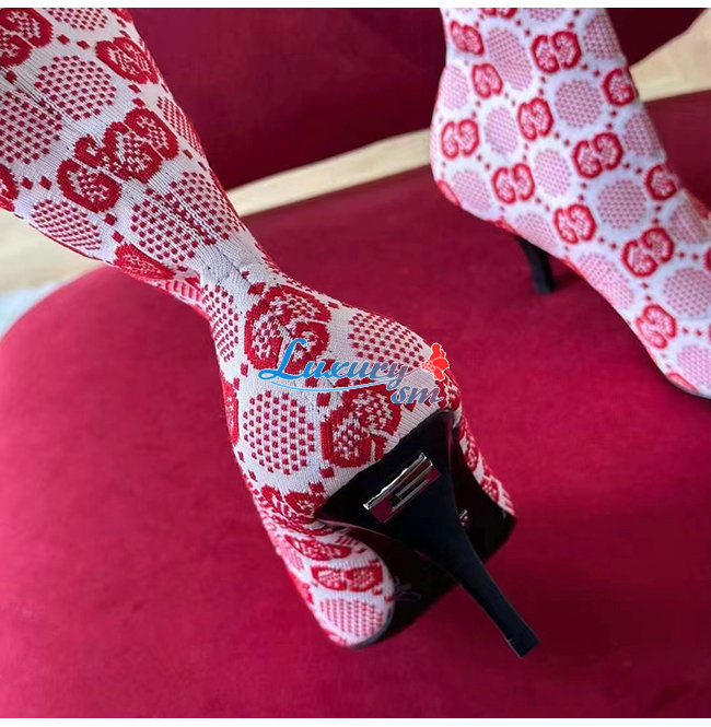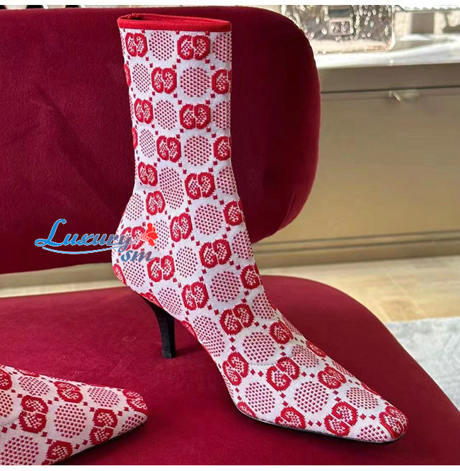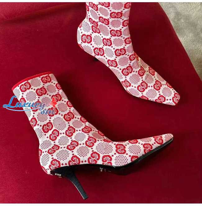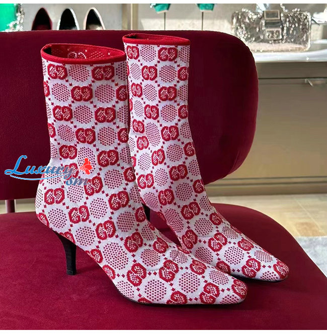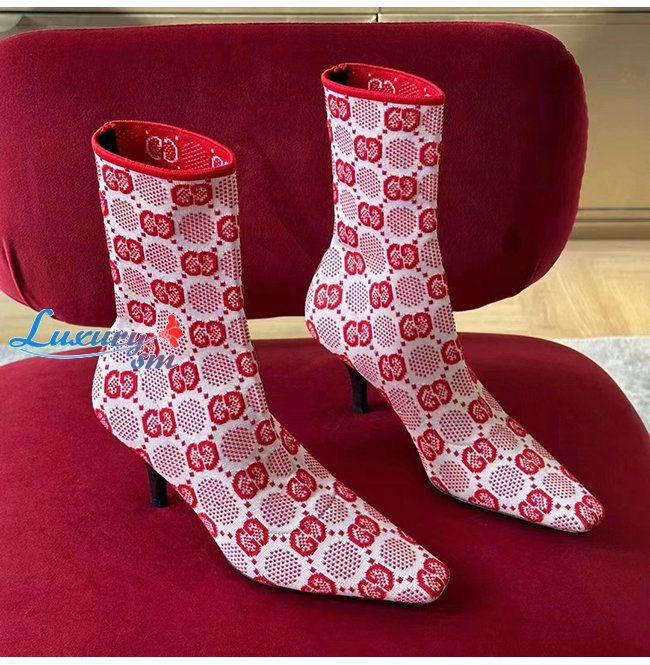GUCCI-718378 5810 구찌 핑크 GG 니트 앵클 부츠