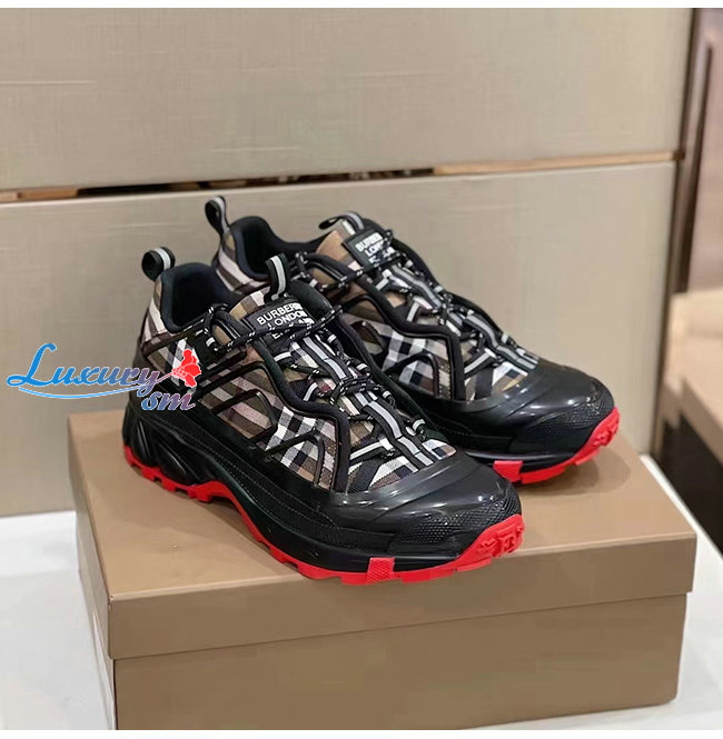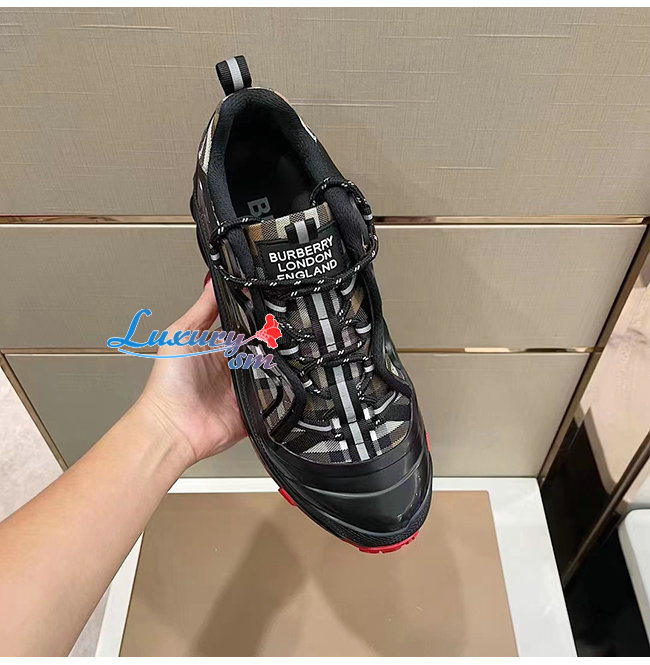 슈즈 디자인과 버버리 아이코닉 체크가 연