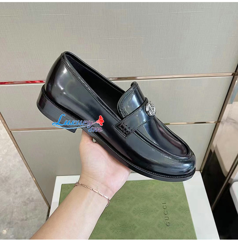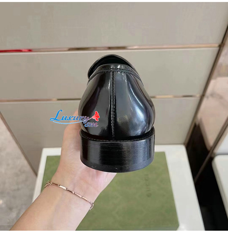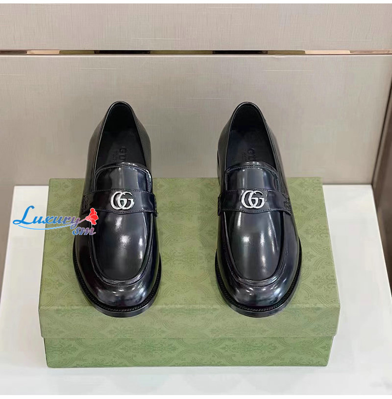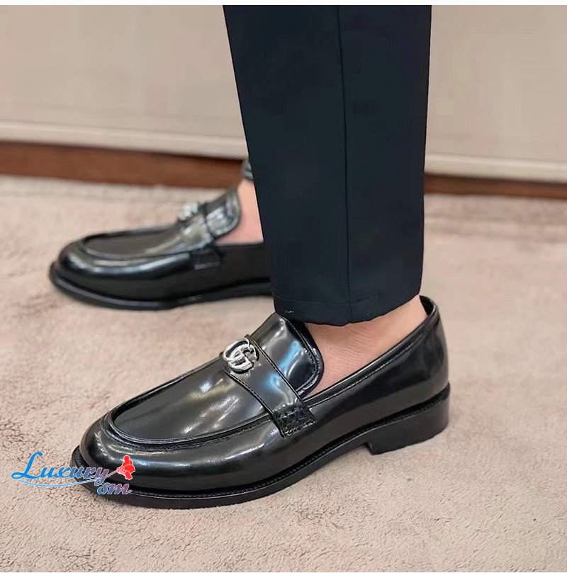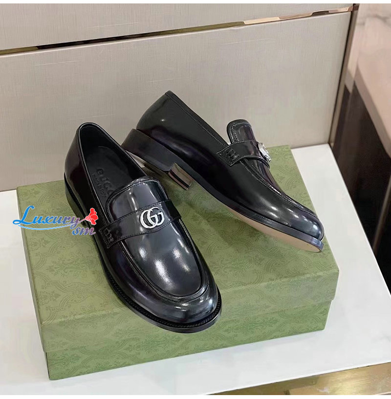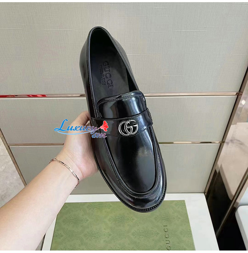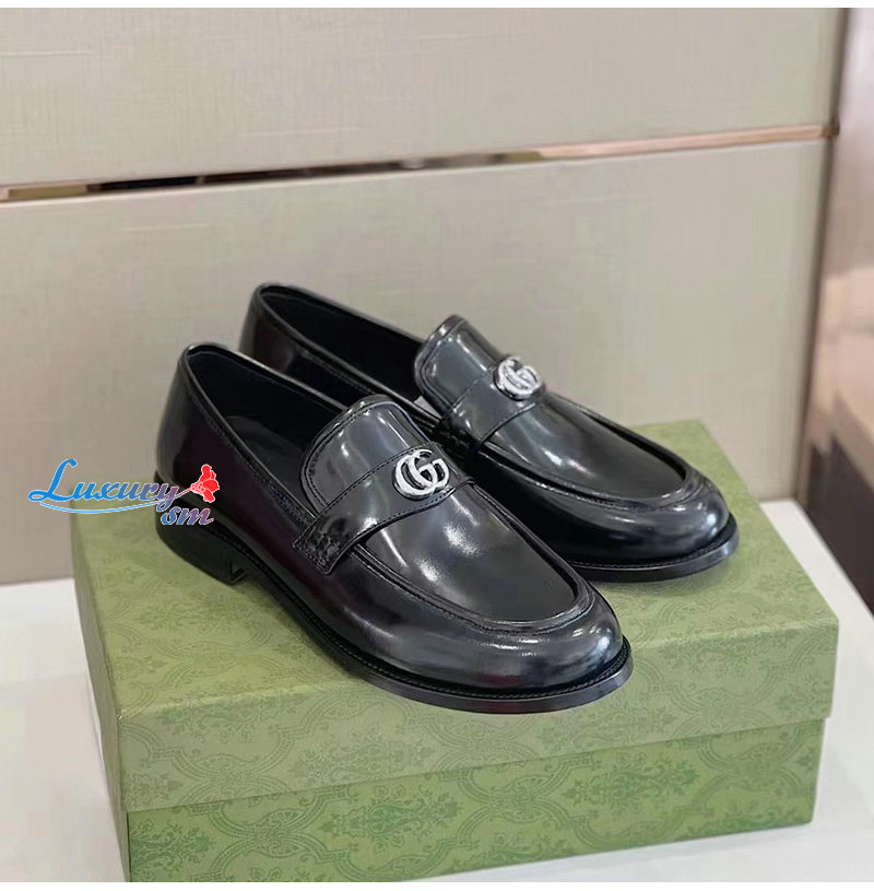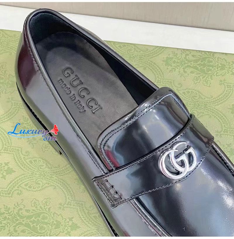 GUCCI-03111 구찌 블랙 페이턴트 가죽 더블 G 로퍼 남성용
