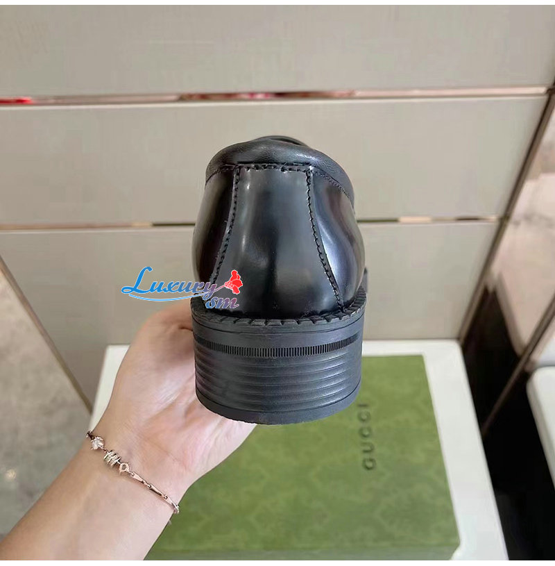 을 더함 샤이니 블랙 레더와 독특한 힐,구찌오 구