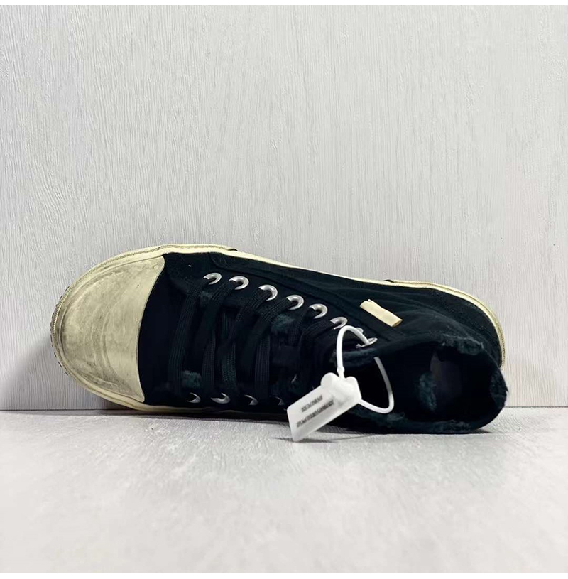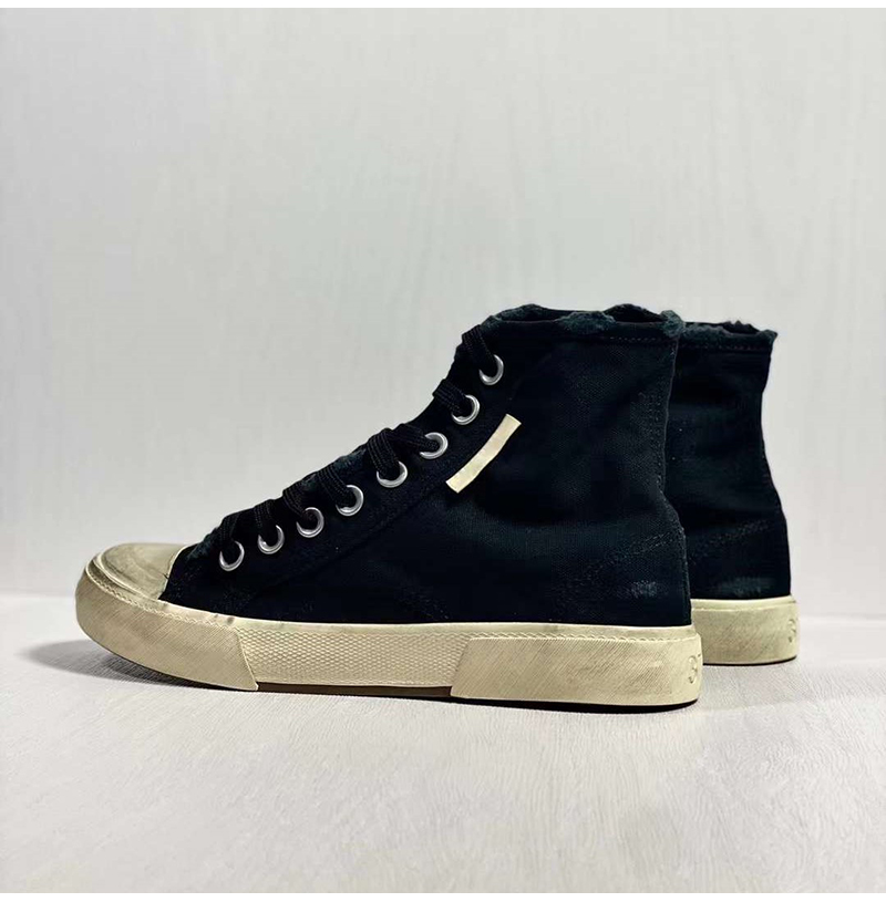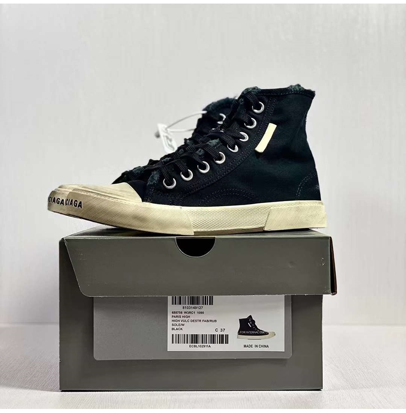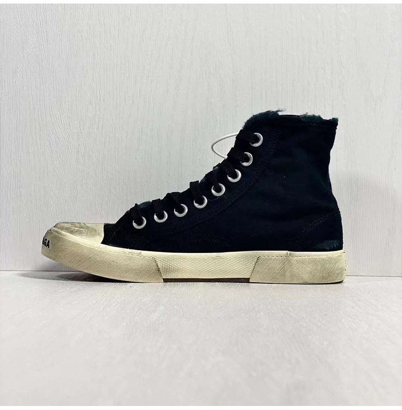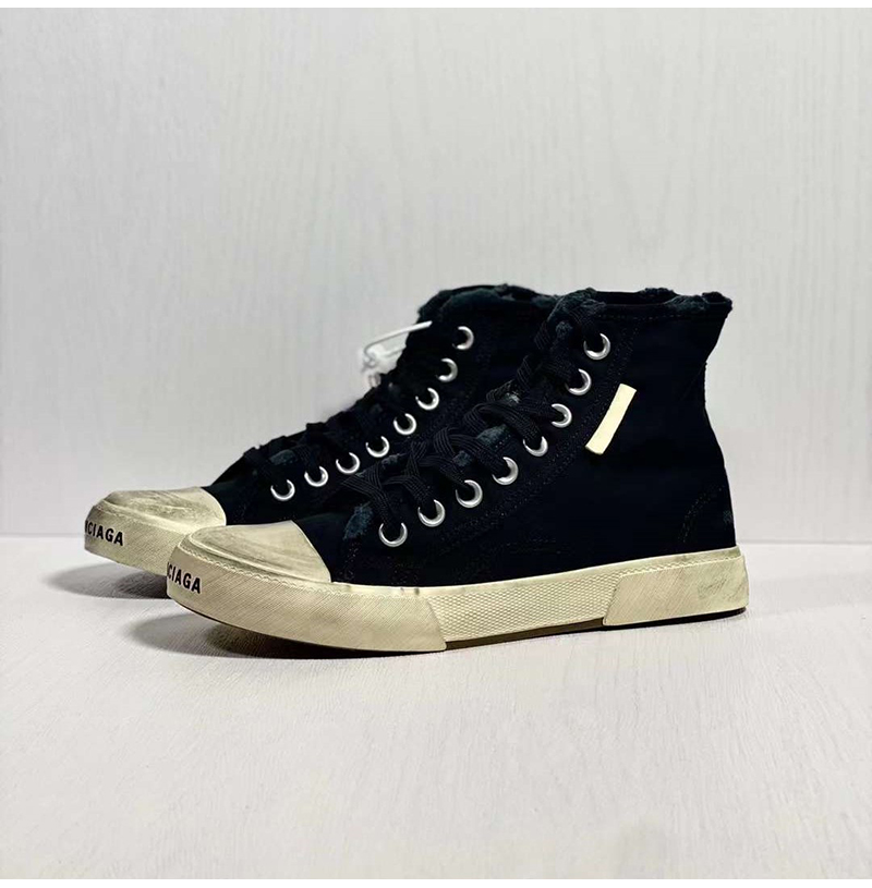 BALENCIAGA-688752 발렌시아가 블랙 디스트로이드 코튼 앤 화이트 러버 Paris High Top 스니커즈