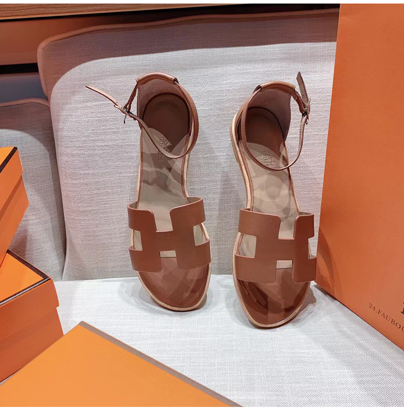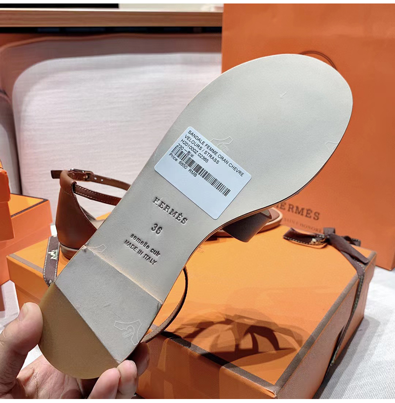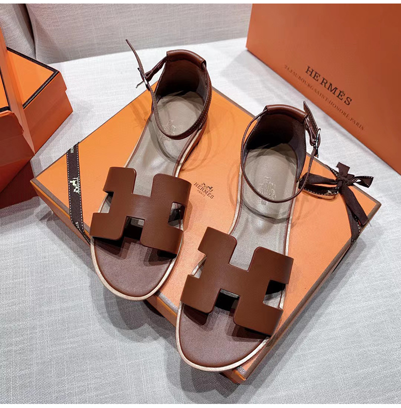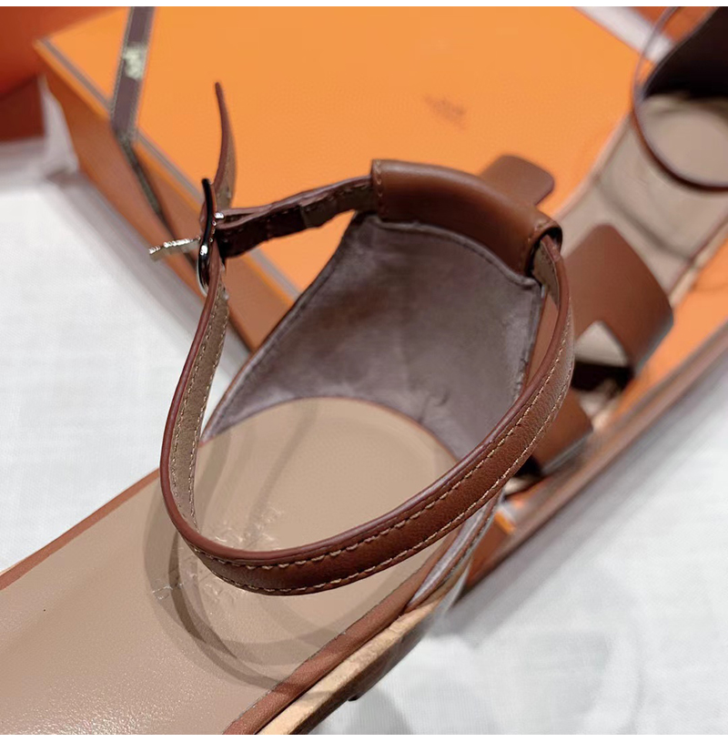 HERMES-H182139 에르메스 브라운 카프스킨 Santorini 샌들 여성용
