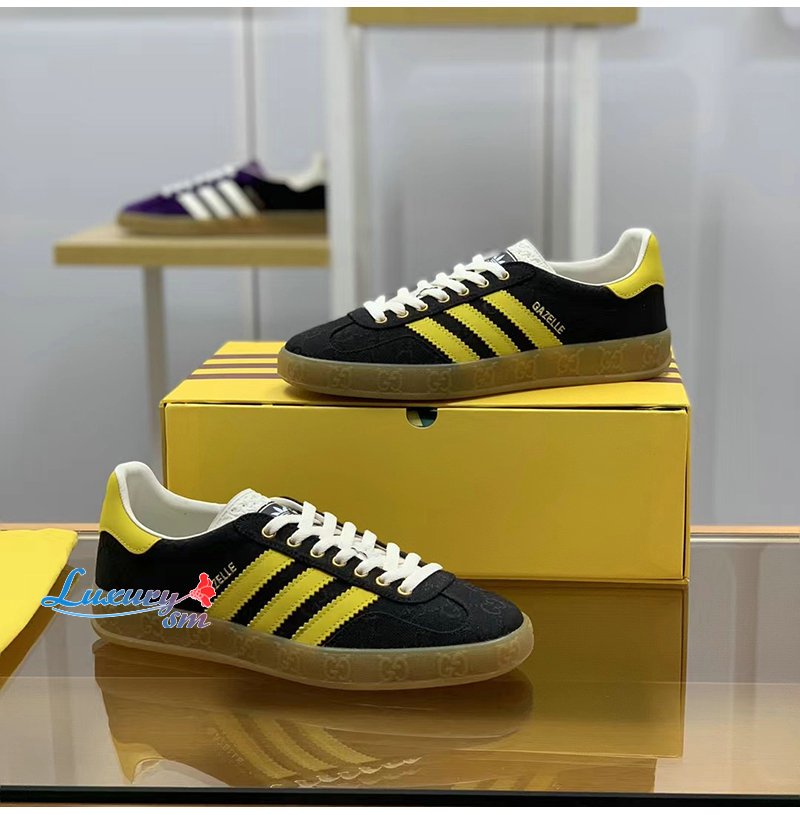 GUCCI-737967 1084 구찌 블랙/옐로우 아디다스 x 구찌 가젤 스니커즈 남여공용