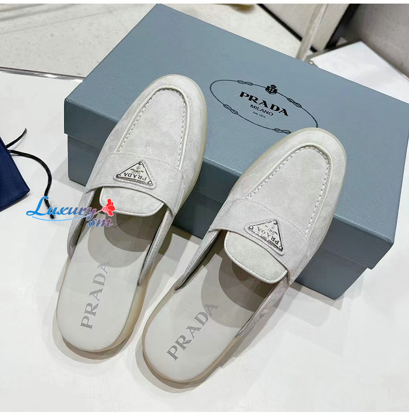 PRADA-1D270N 프라다 초크 화이트 스웨이드 가죽 사보 여성용