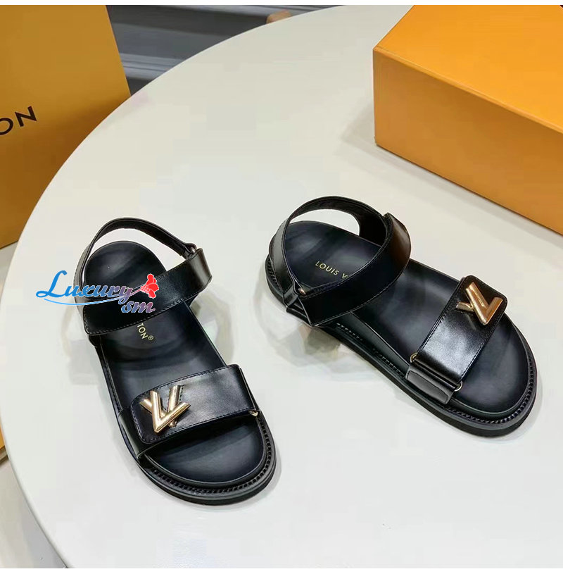 LOUIS VUITTON-1ABW6U 루이비통 블랙 LV 선셋 플랫 컴포트 샌들 남여공용