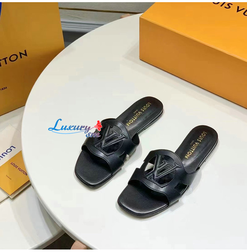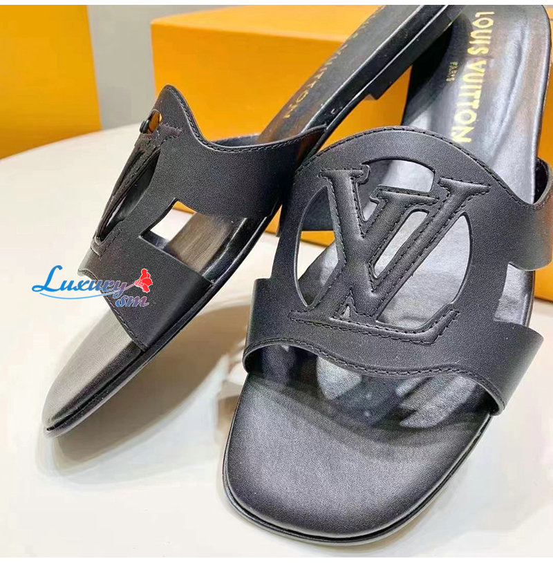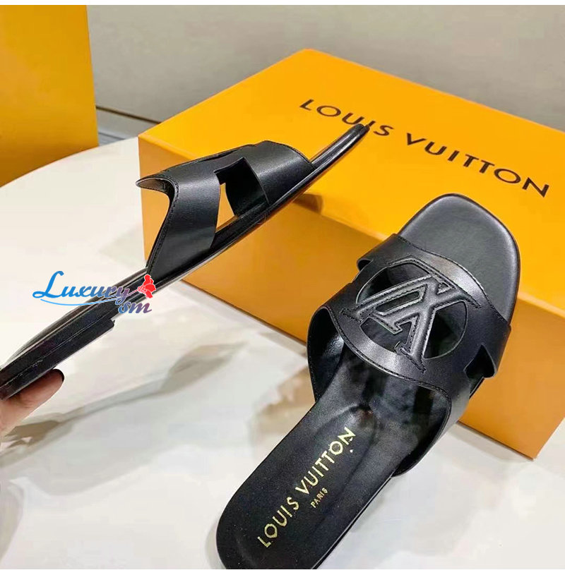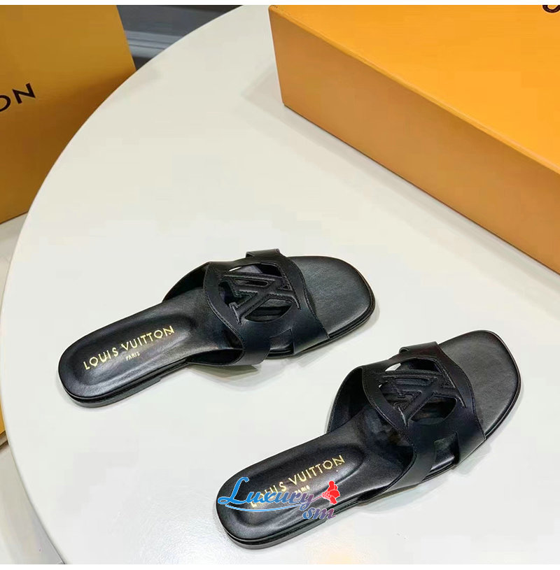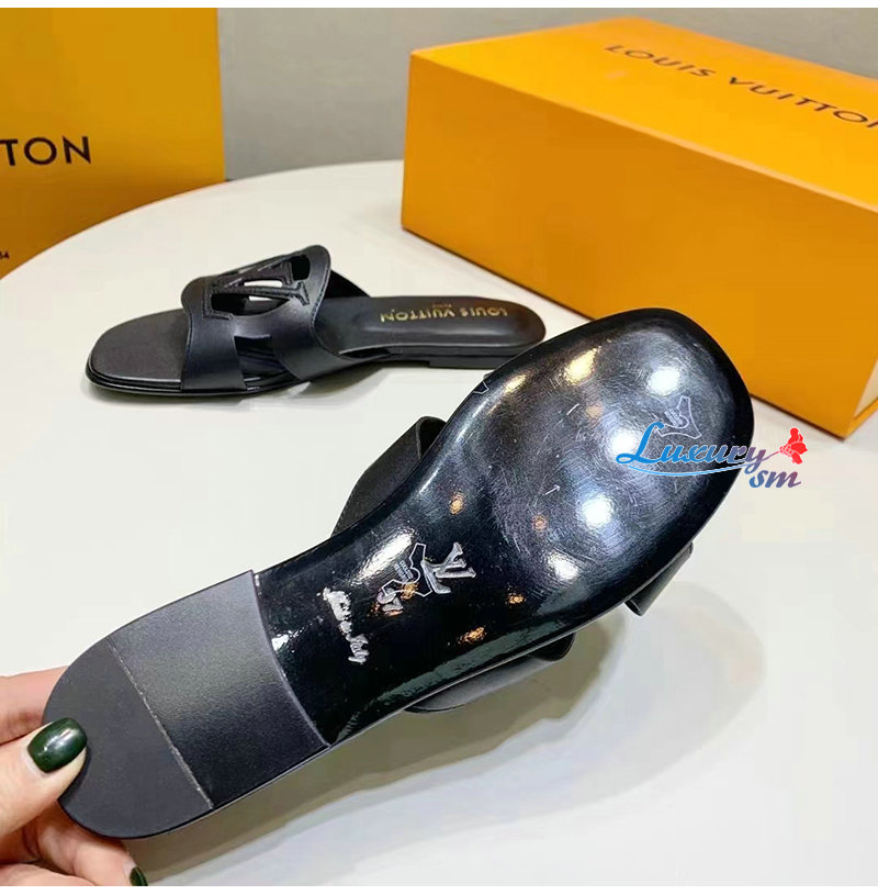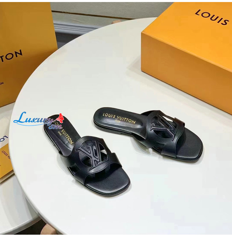 LOUIS VUITTON-1ABOZX 루이비통 블랙 LV 이솔라 플랫 뮬 여성용
