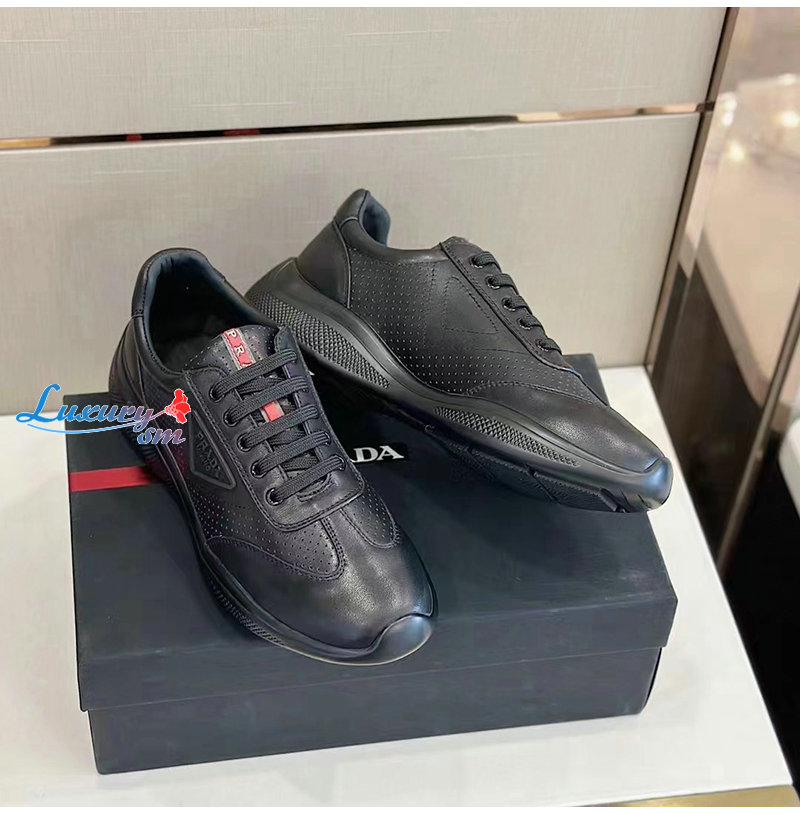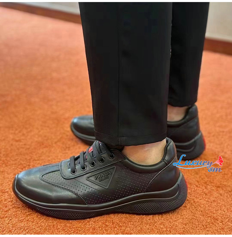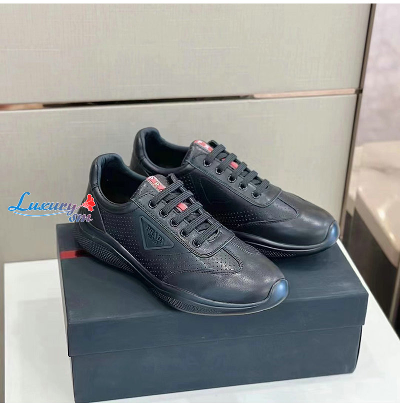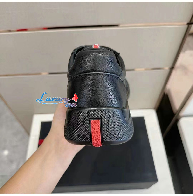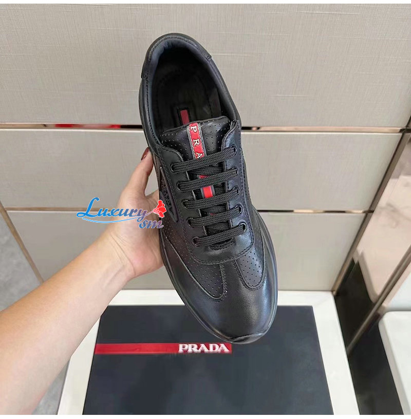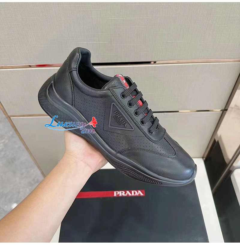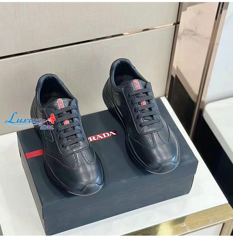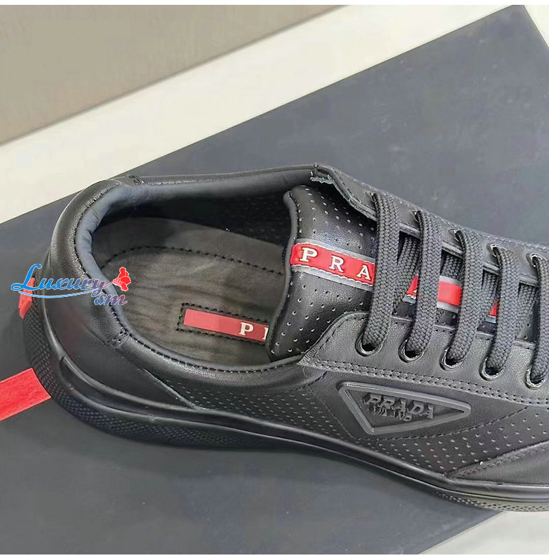PRADA-07062 프라다 블랙 소가죽 트라이앵글 로고 스니커즈 남성용