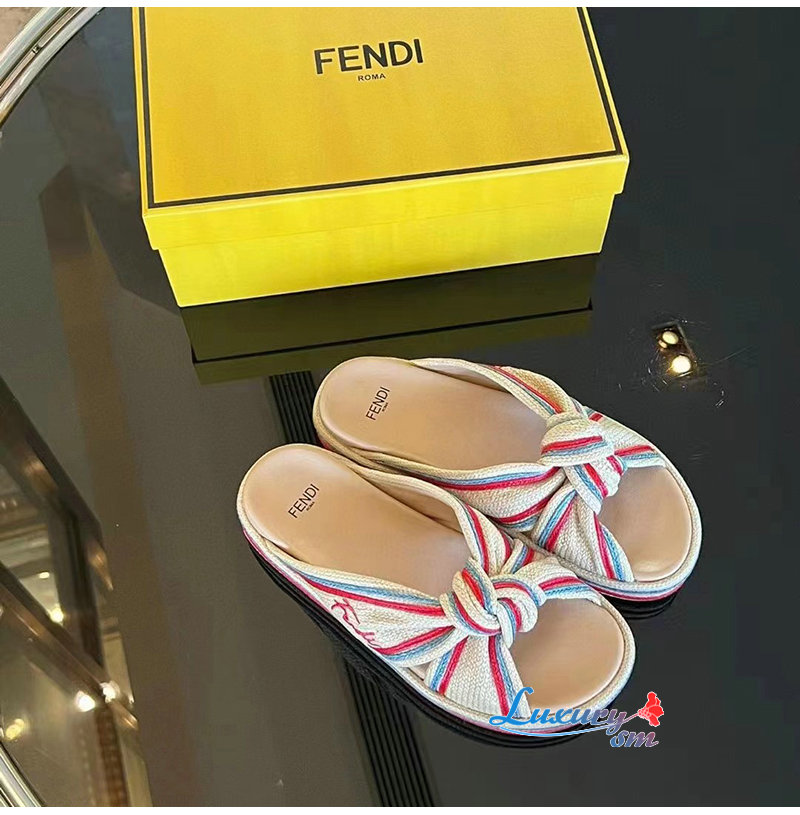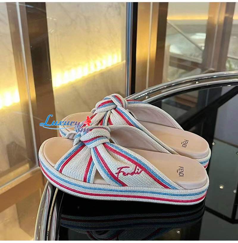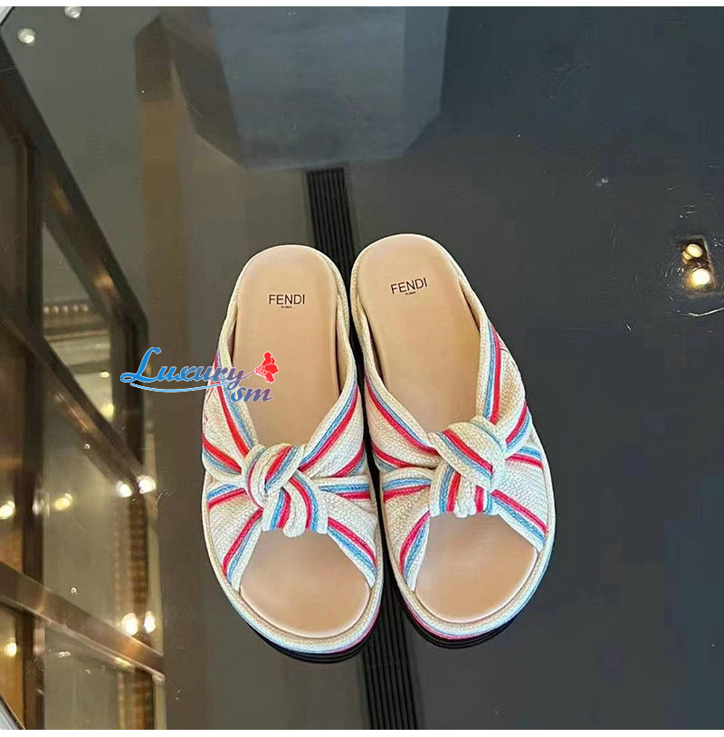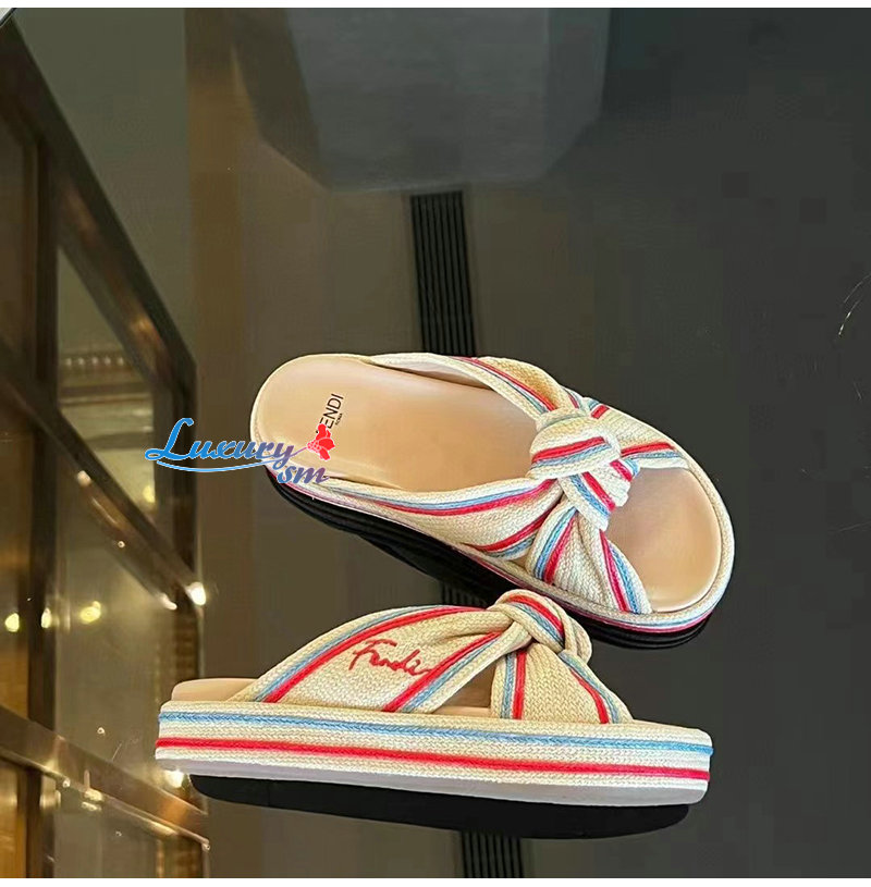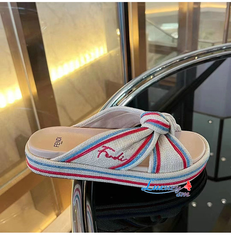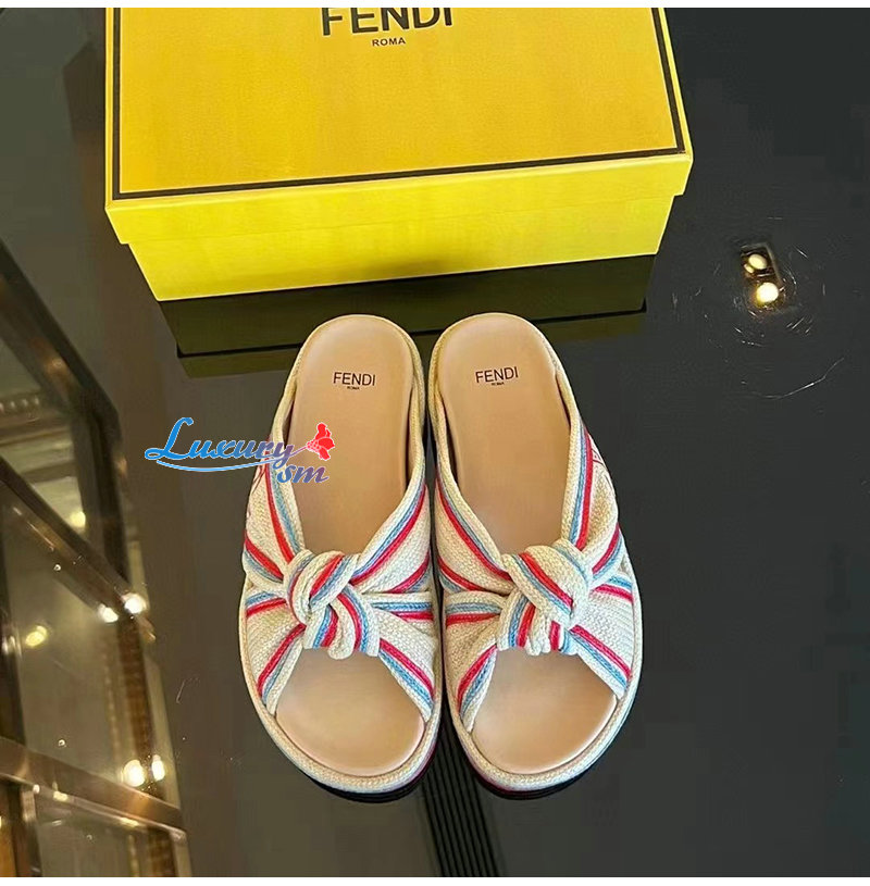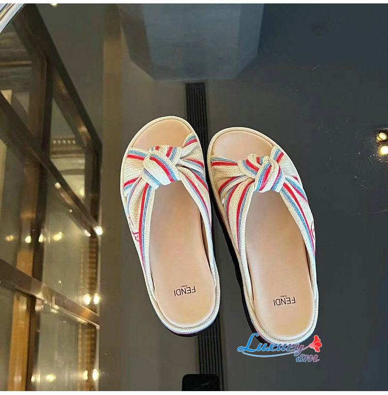 FENDI-8X8424 펜디 베이지 라피아 슬라이드 여성용
