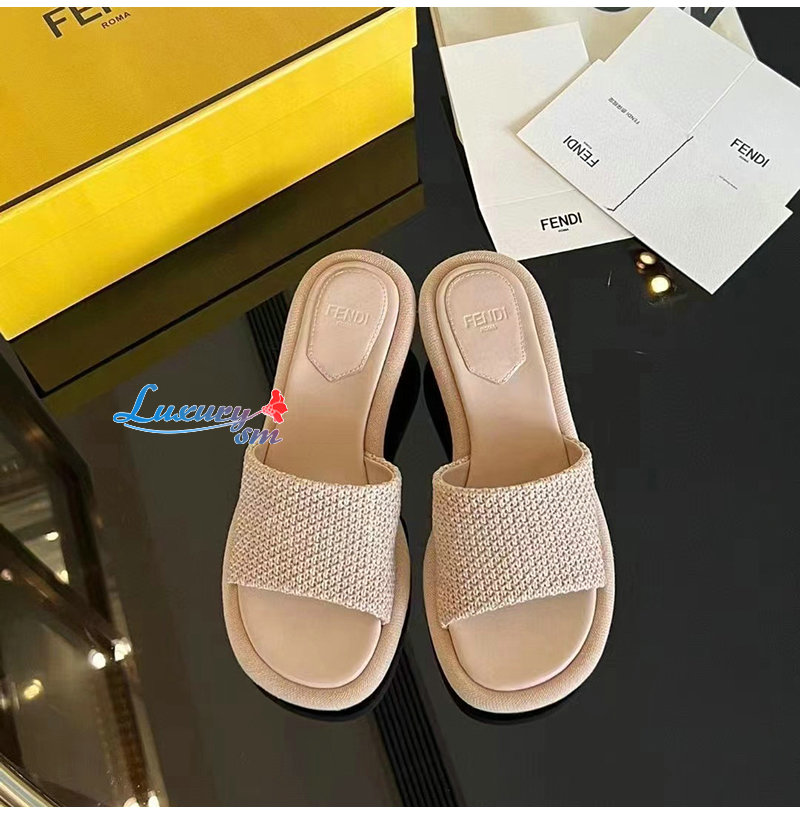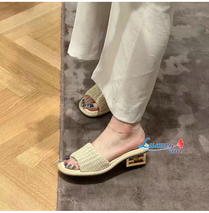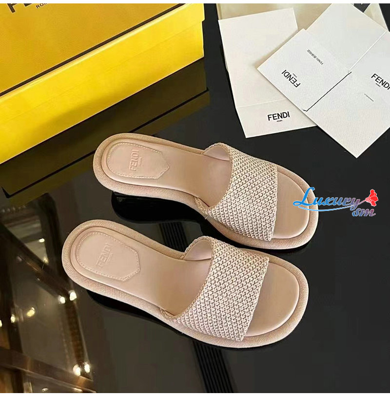 FENDI-8R8412 펜디 베이지 라피아 바게트 슬라이드