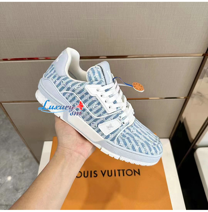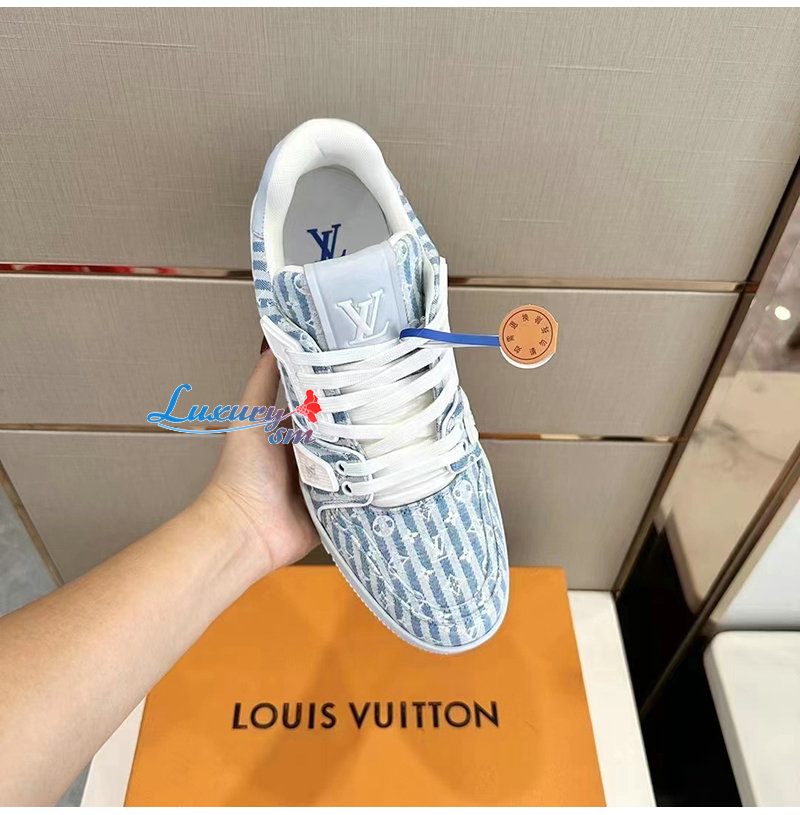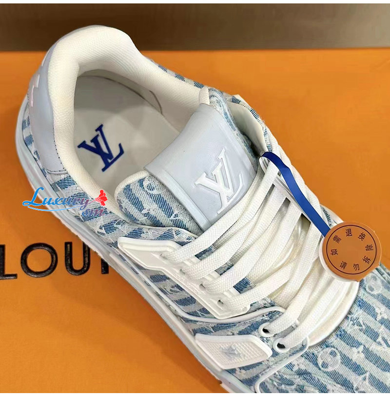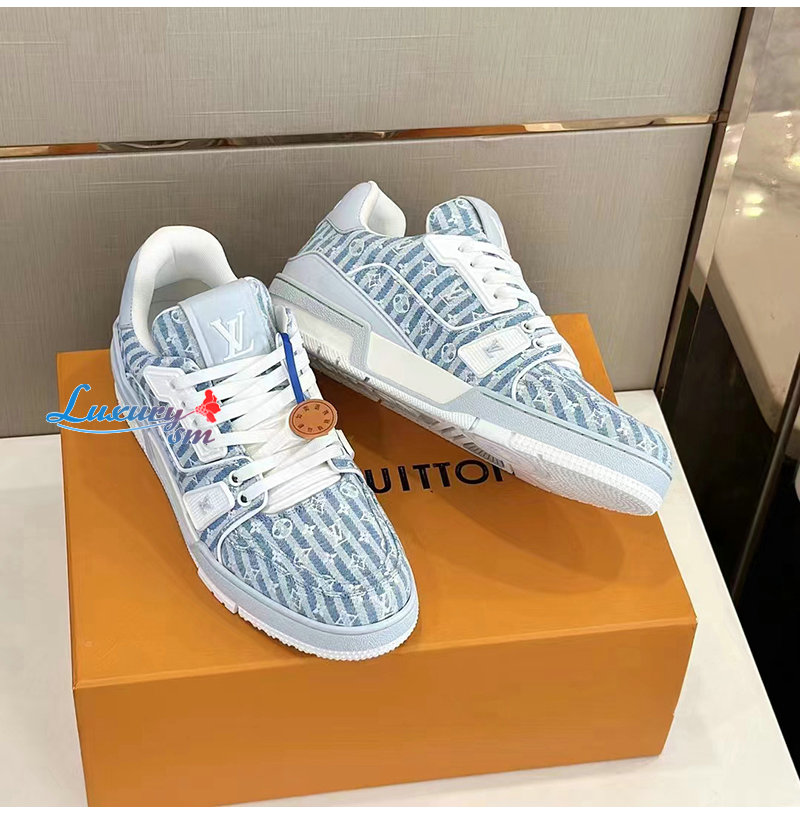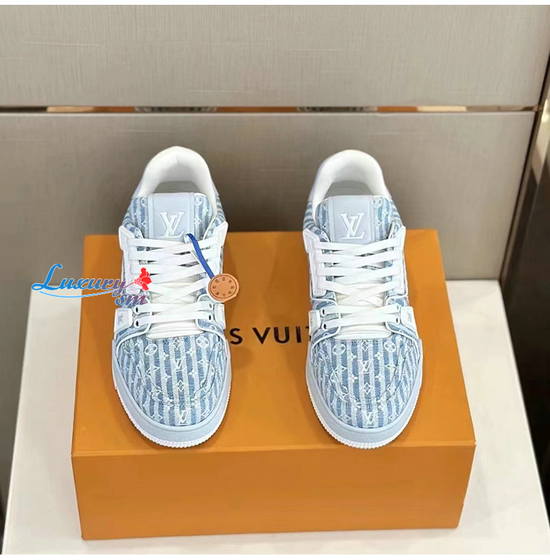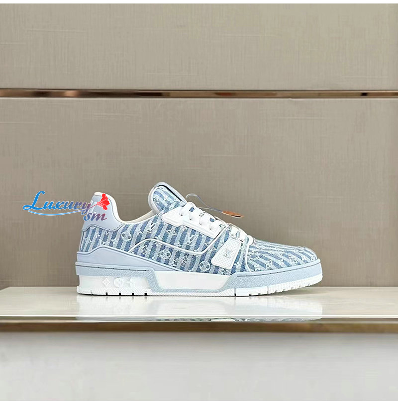 LOUIS VUITT**-1A9ZIE 루이비통 블루 모노그램 데님 LV 트레이너 스니커즈