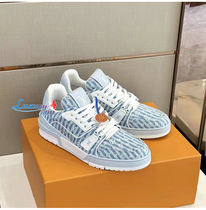 LOUIS VUITT**-1AA6WX 루이비통 라이트 블루 LV 트레이너 스니커즈 남여공용