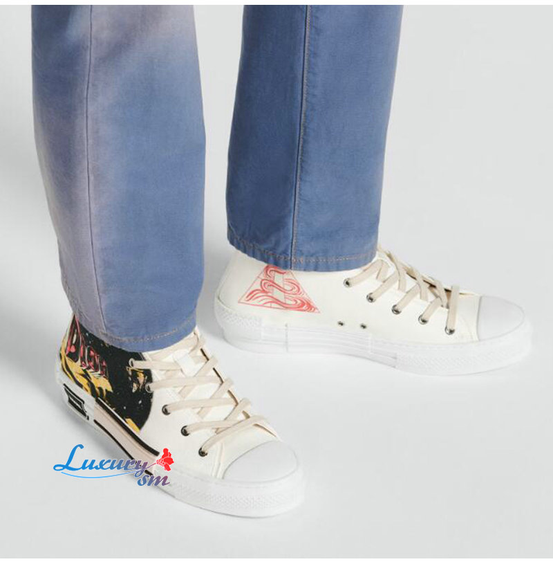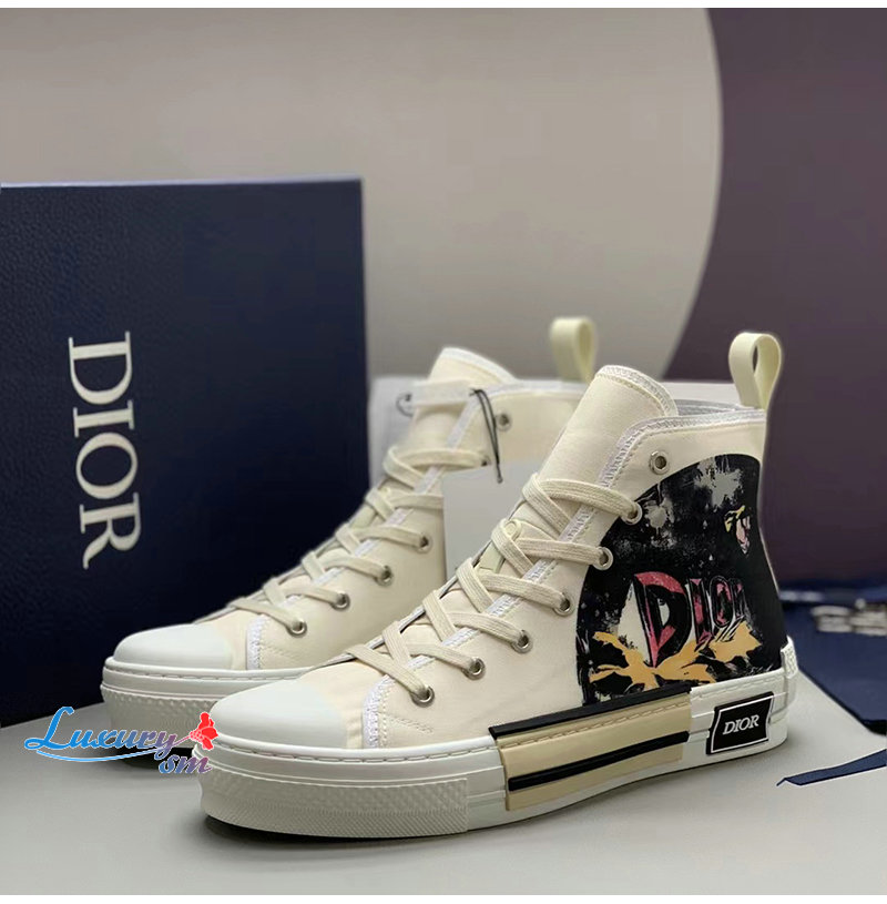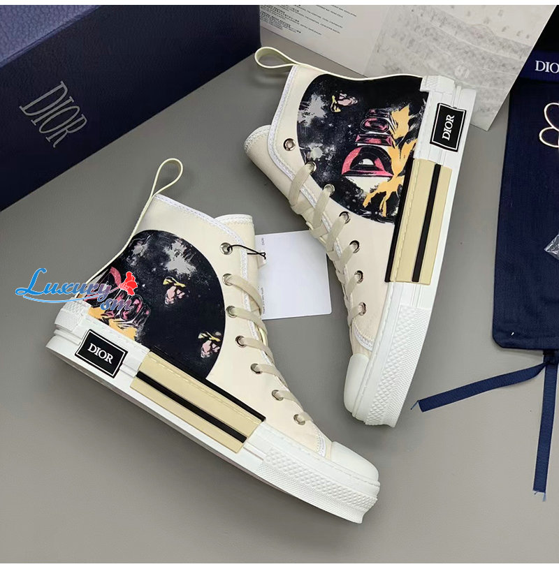 DIOR-3SH118 디올 DIOR & 알렉스 폭스턴 프린트 DIOR OBLIQUE B23 하이탑 스니커즈 남여공용