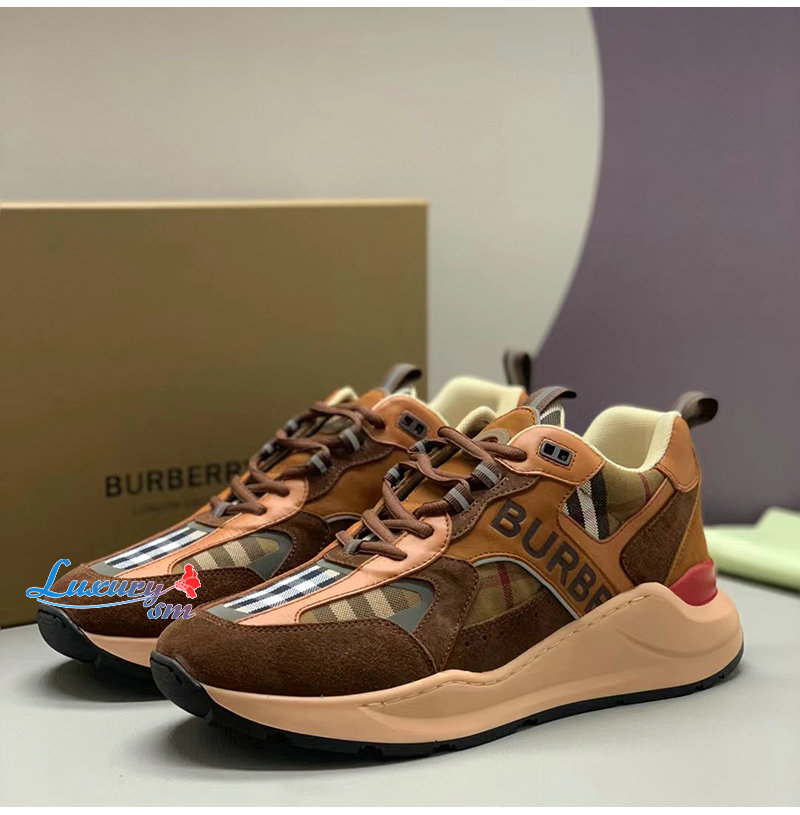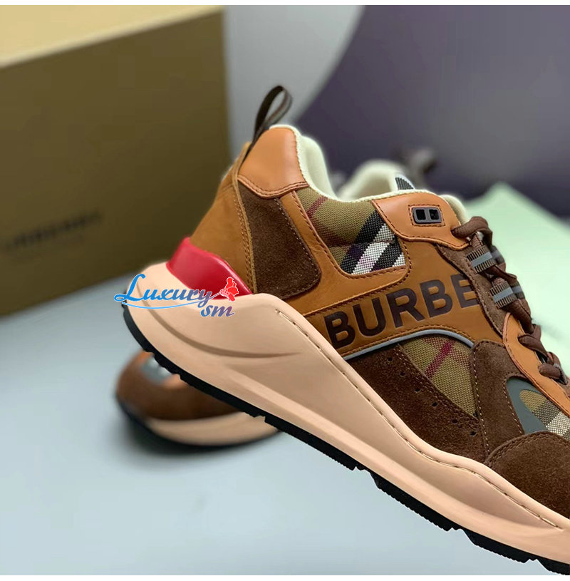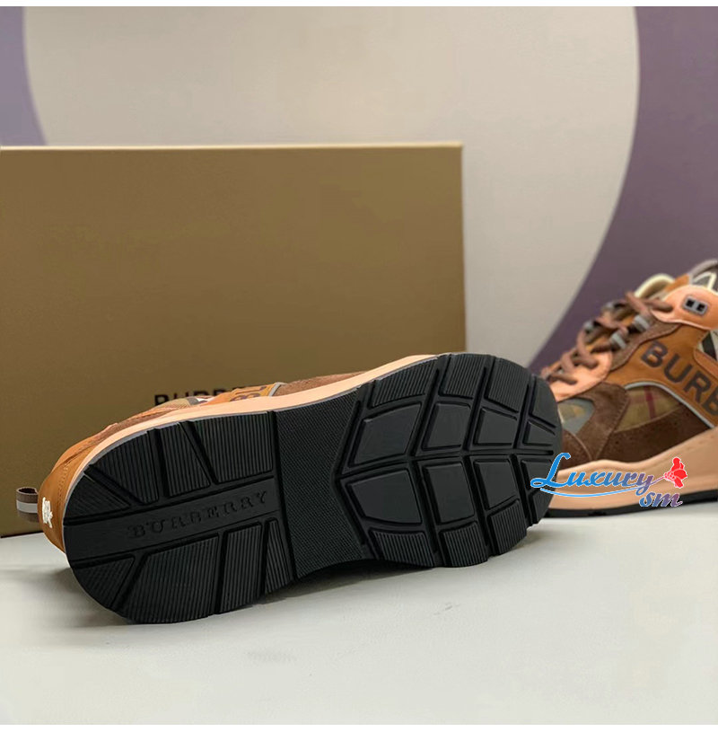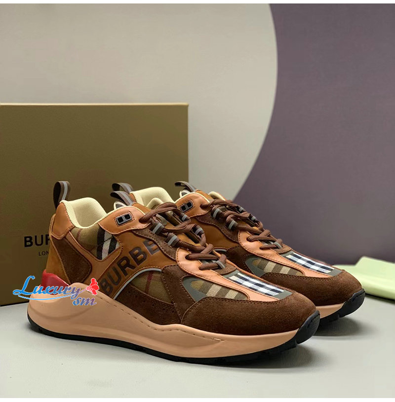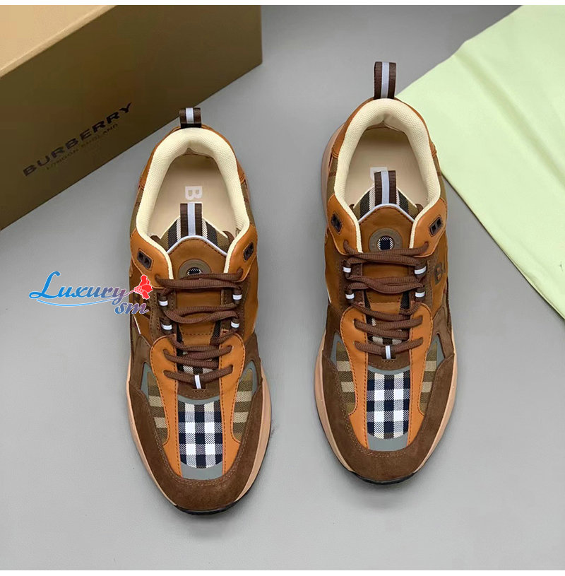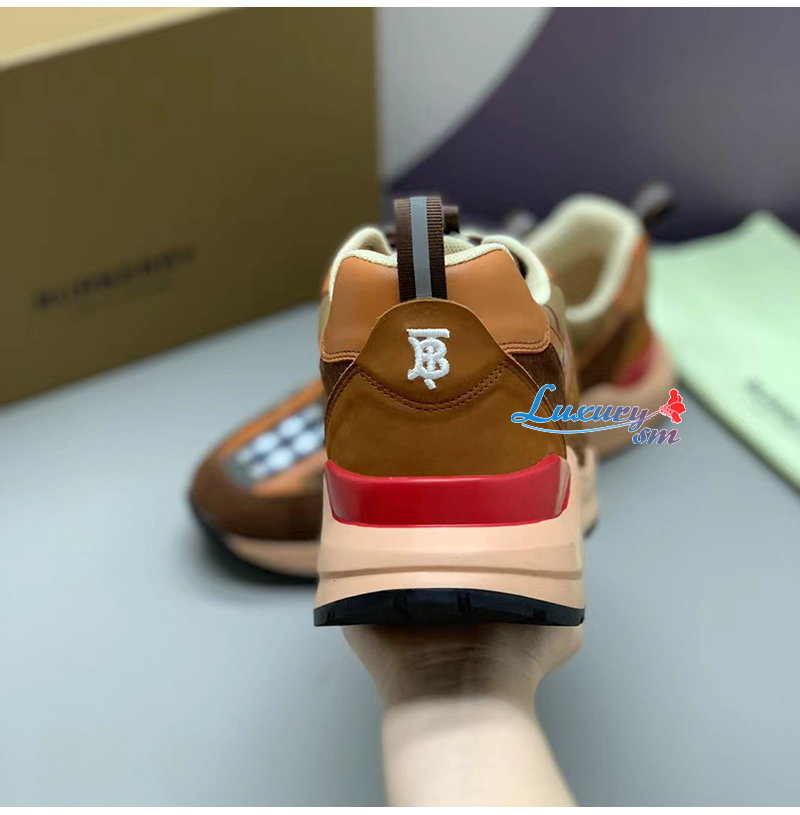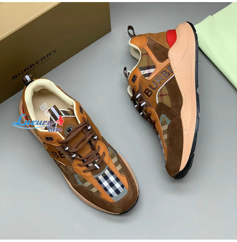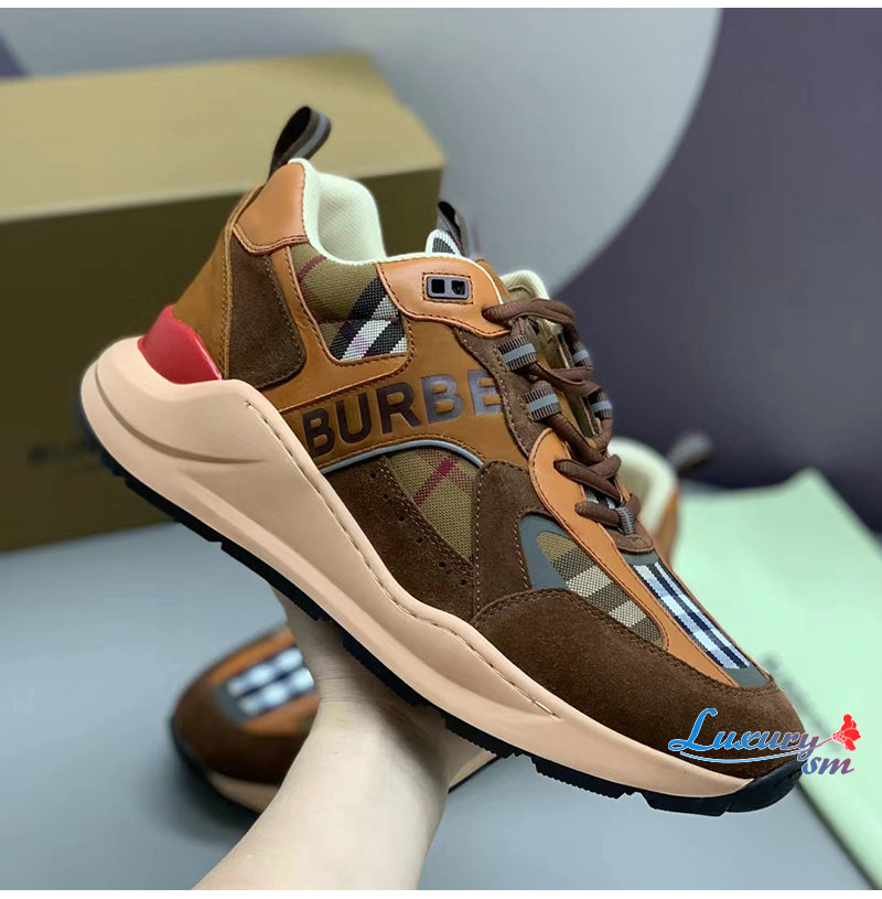 BURBERRY-80592561 버버리 브라운 체크 스웨이드 스니커즈 남성용