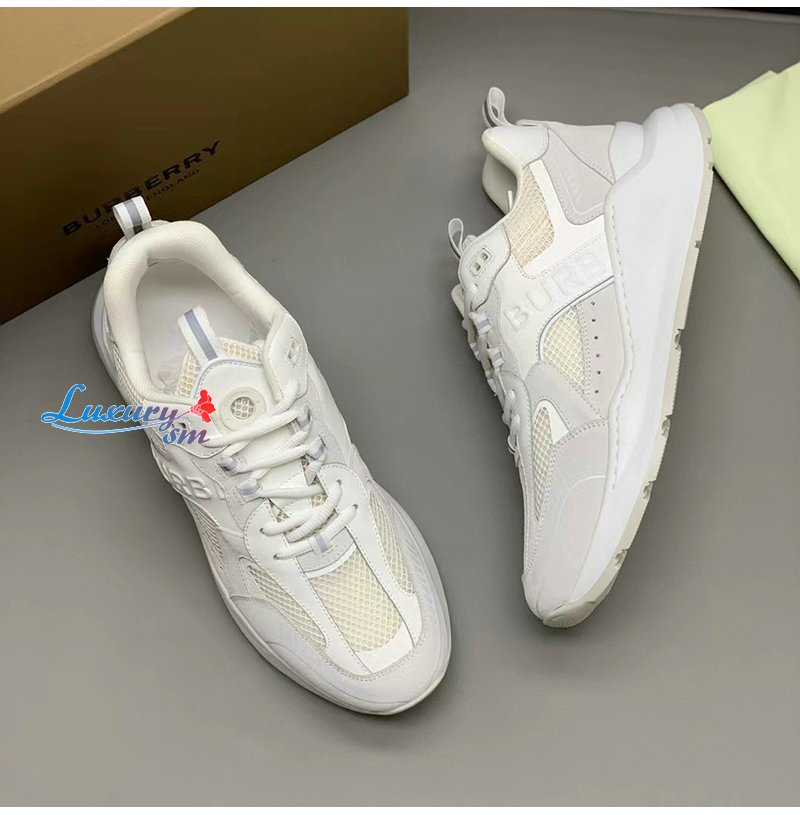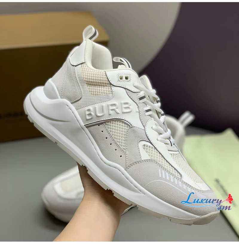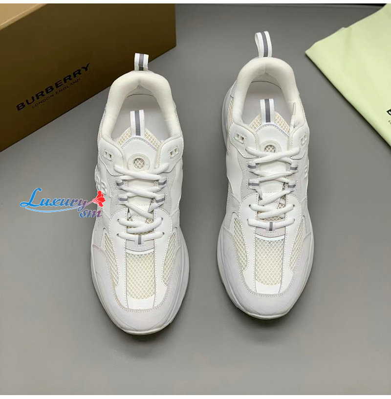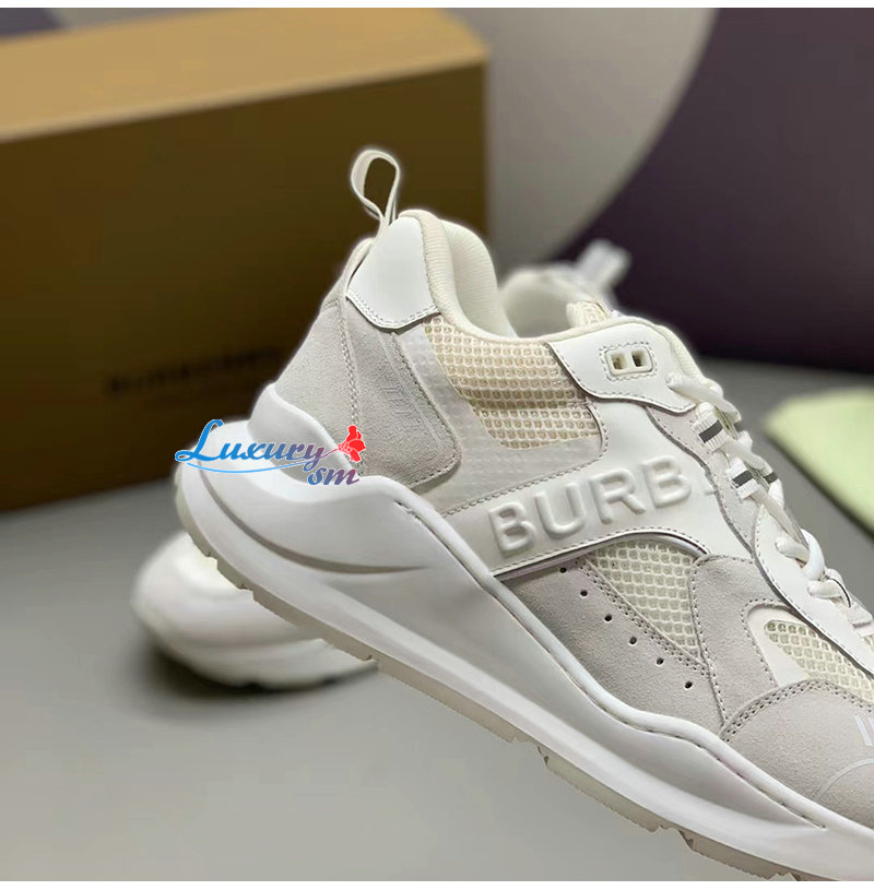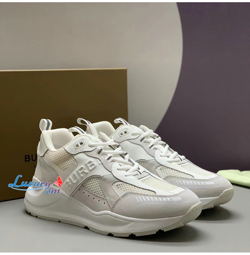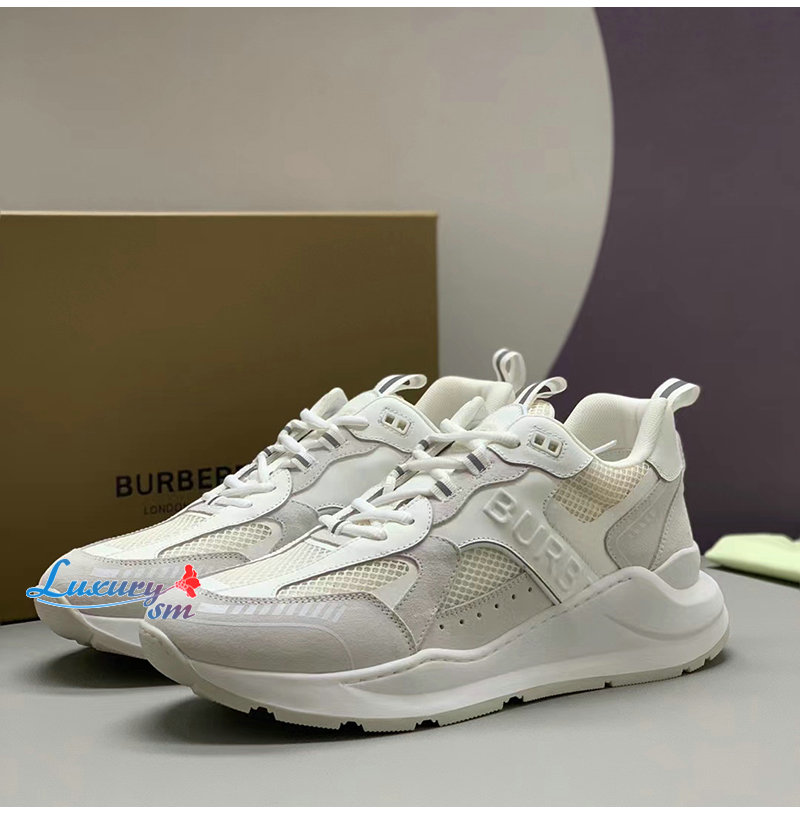 BURBERRY-80623611 버버리 화이트 레더 스웨이드 메시 스니커즈 남성용