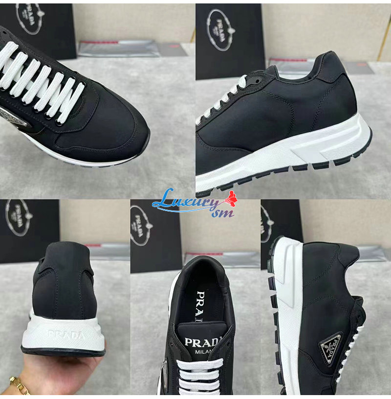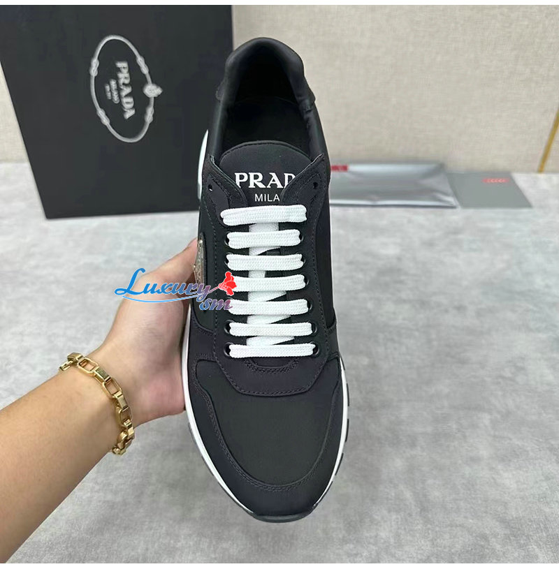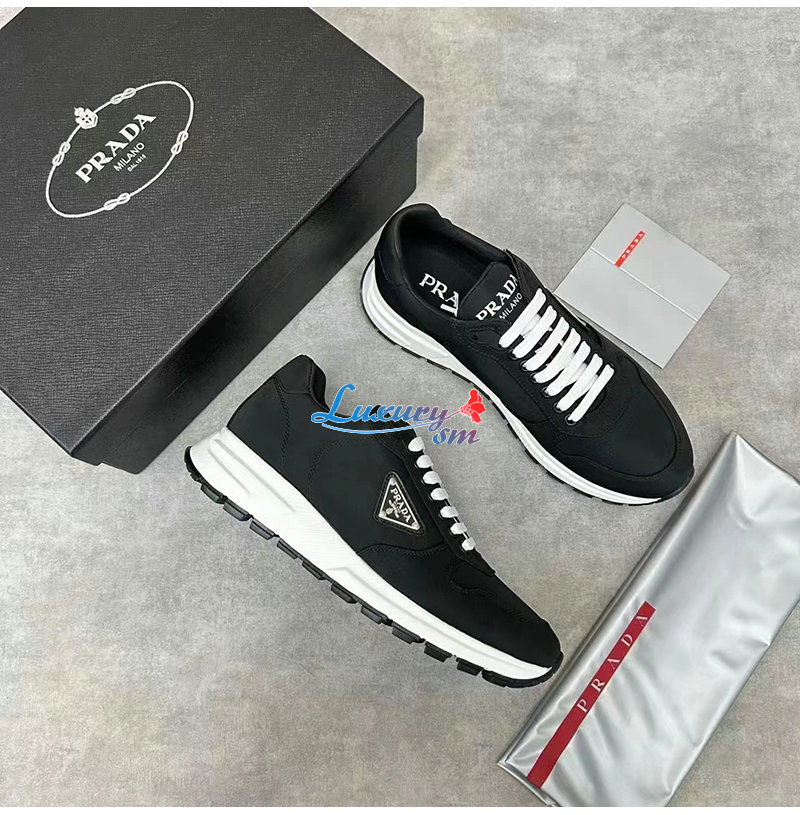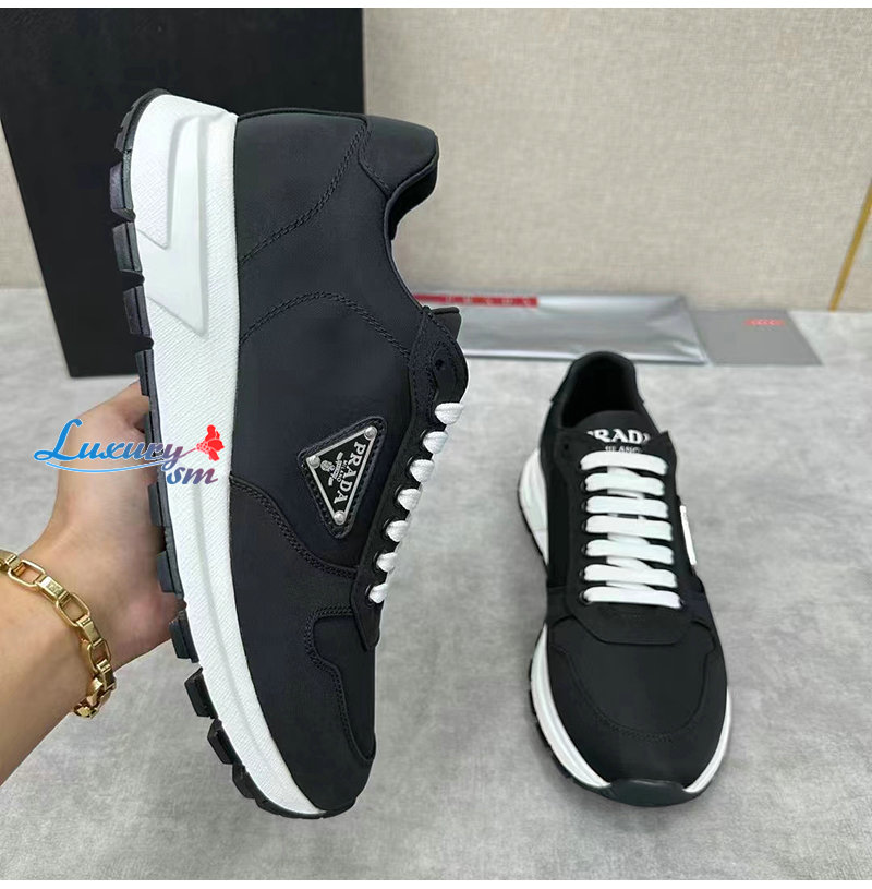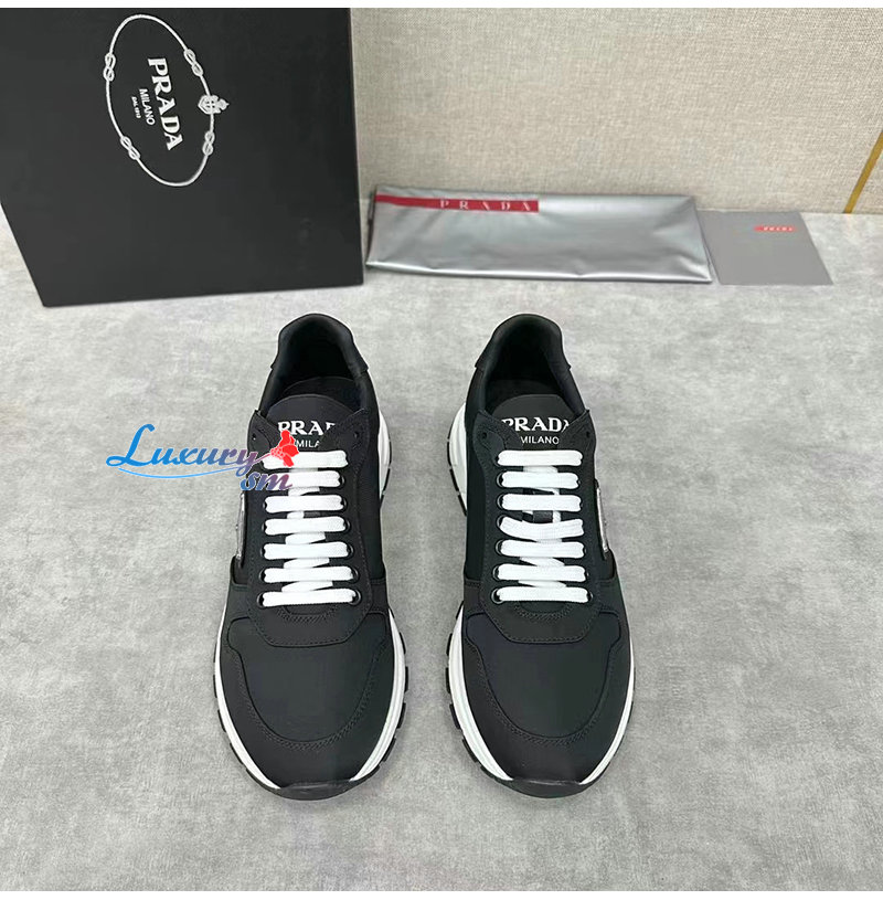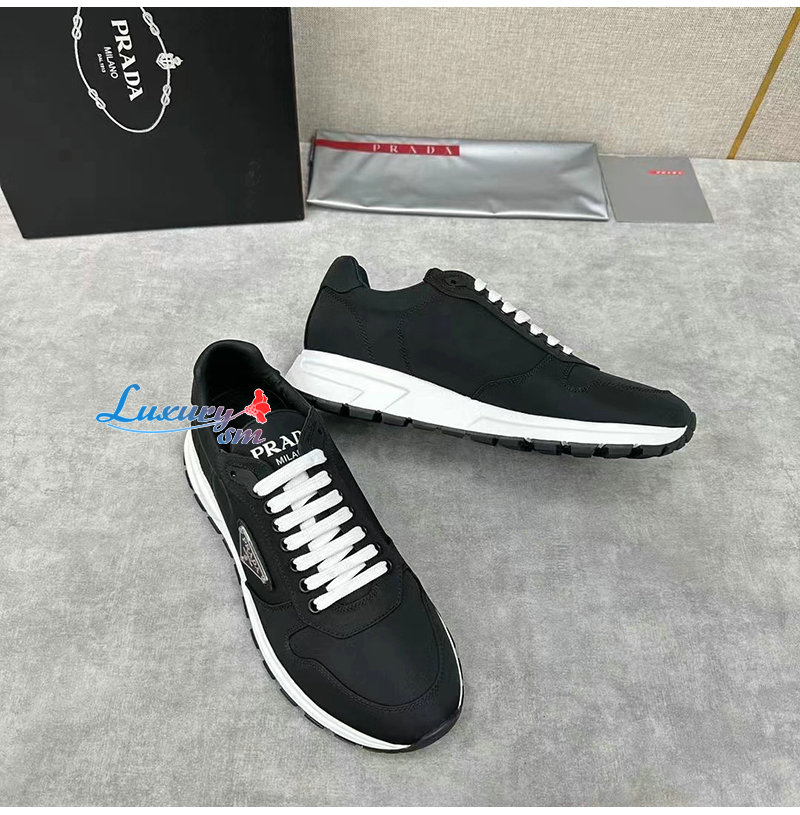 PRADA-2EE369 프라다 블랙/화이트 리나일론 스니커즈 남성용