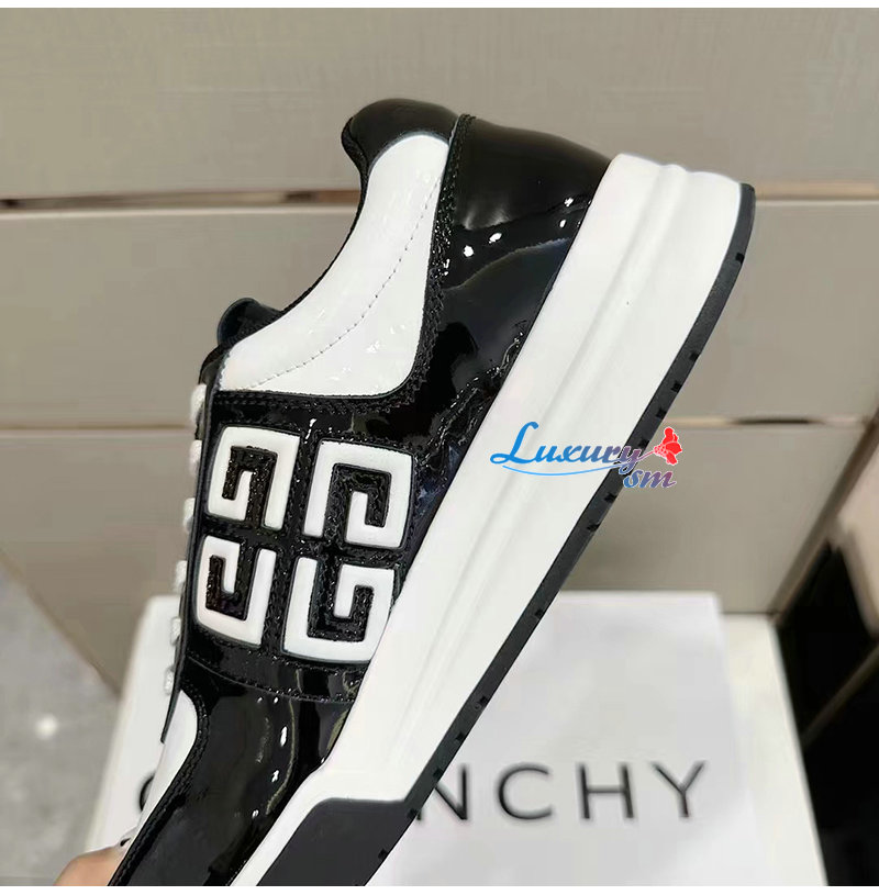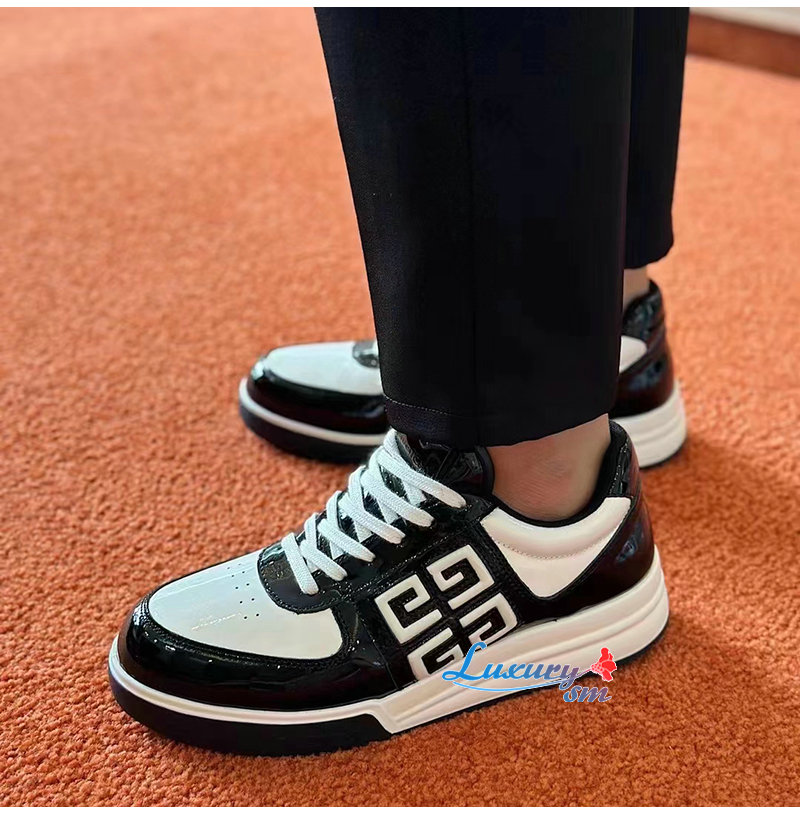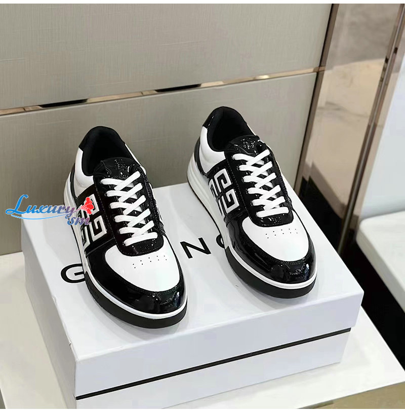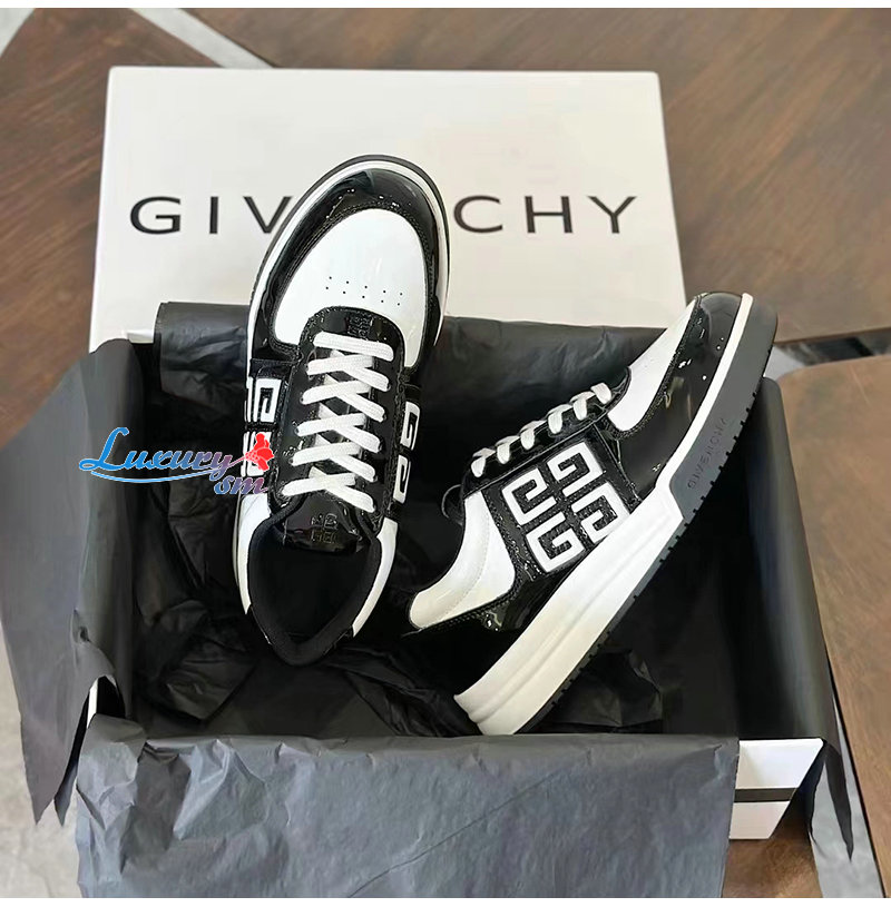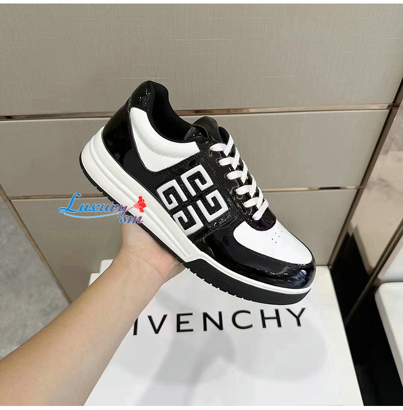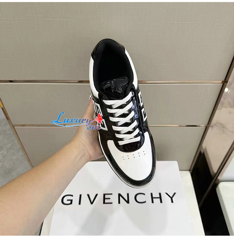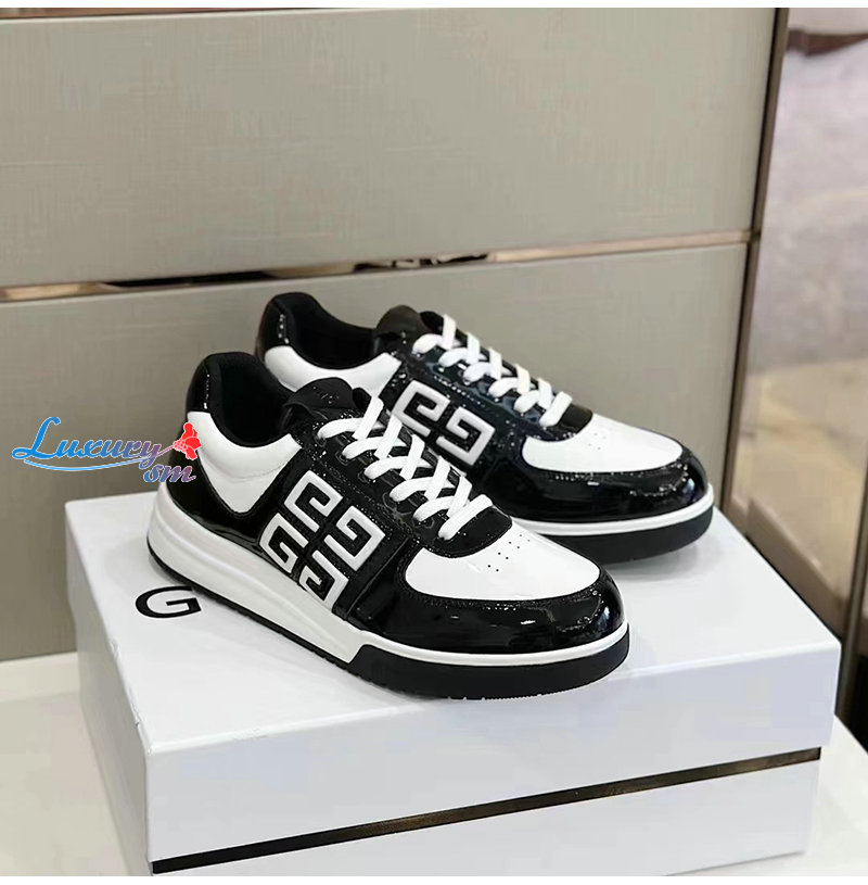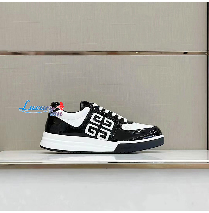 GIVENCHY-BH007WH 지방시 블랙/화이트 G4 페이턴트 가죽 스니커즈 남성용