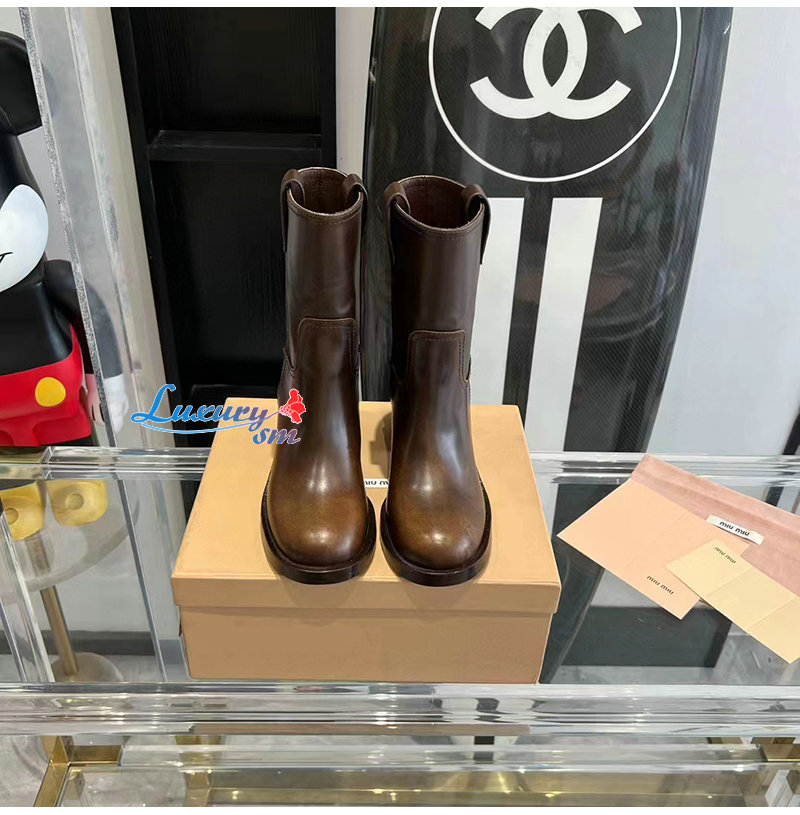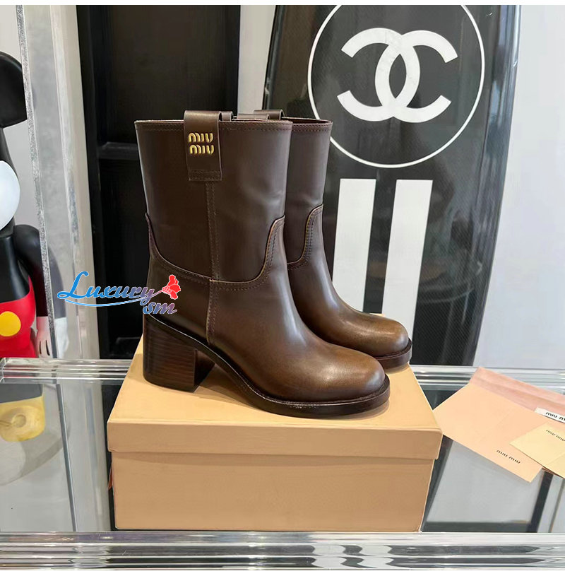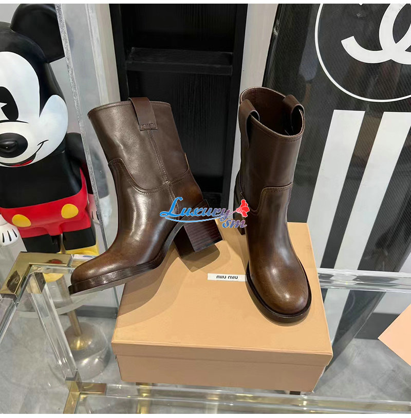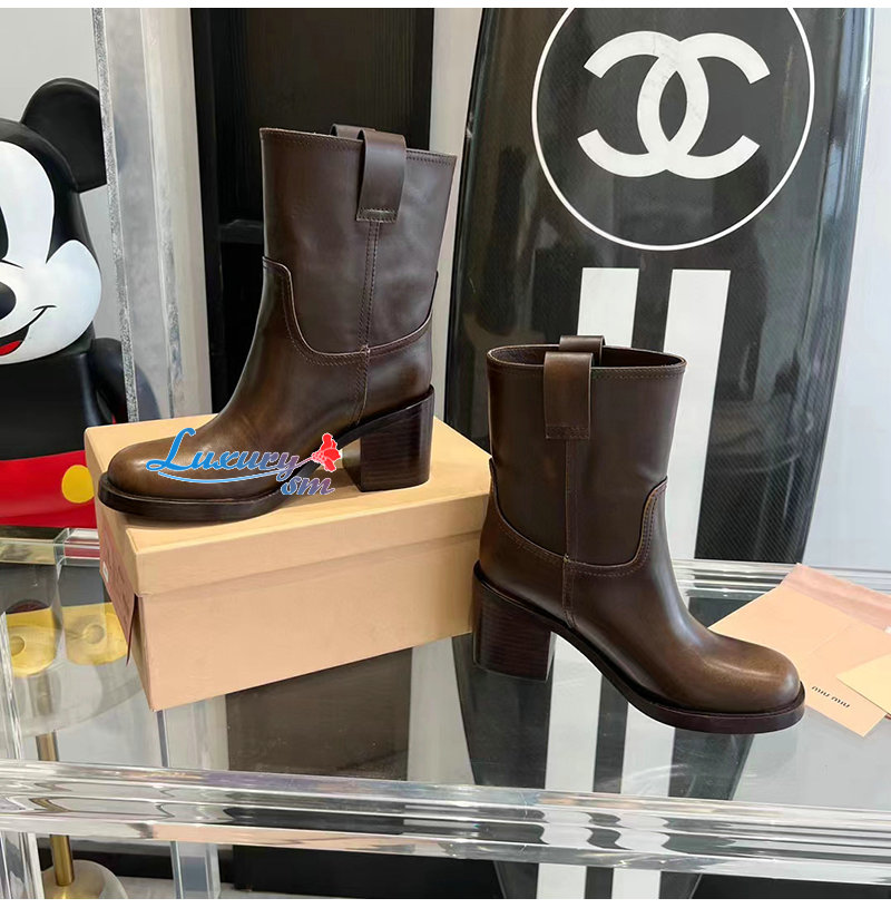 MIUMIU-5U966D 미우미우 시에나 퓌메 가죽 부티 여성용