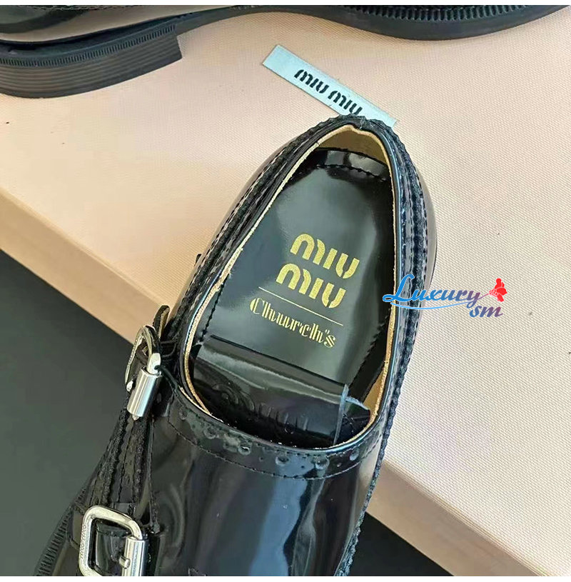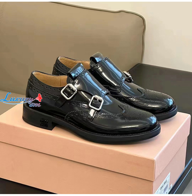 MIUMIU-5E039E 미우미우 블랙 처치스 x 미우미우 더블 몽크 브로그 슈즈 여성용